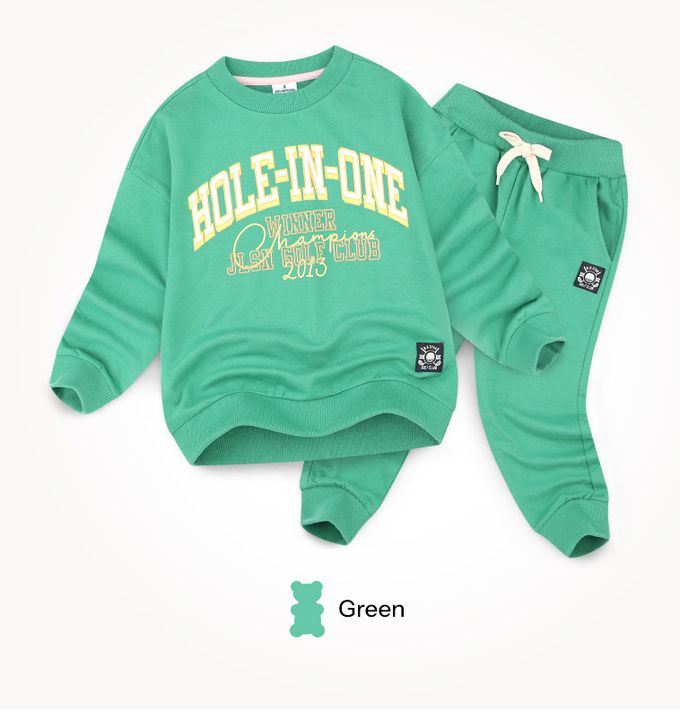韓國 Jelispoon - 美式學院休閒風長袖套裝-草綠