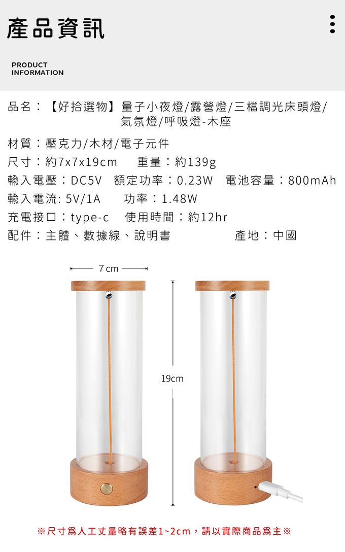 品名:量子小夜燈/露營燈/三檔調光床頭燈/氣氛燈/呼吸燈
