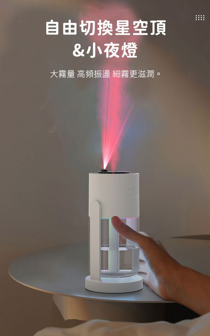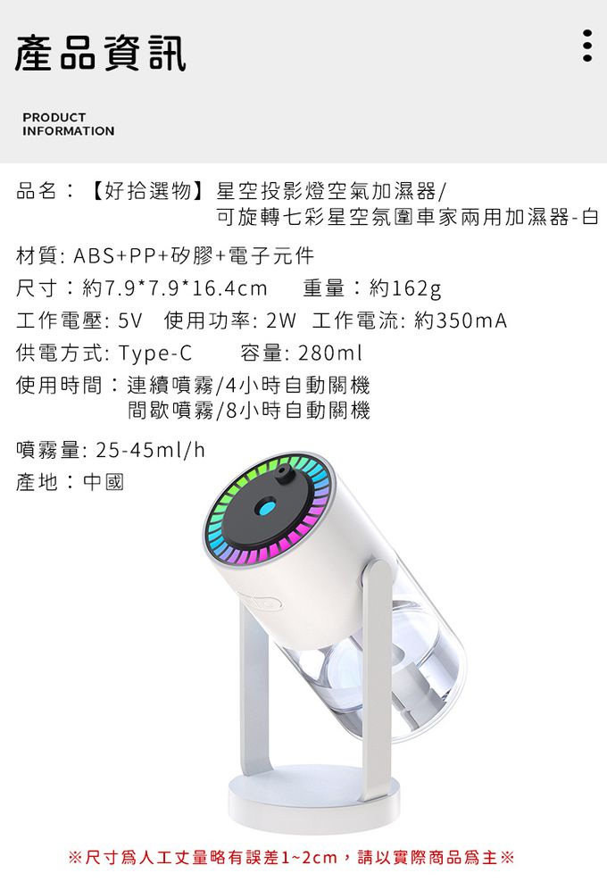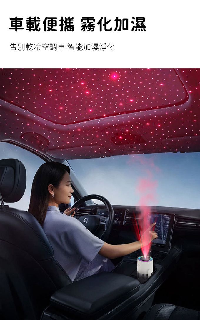 品名:星空投影燈空氣加濕器/可旋轉七彩星空氛圍車家兩用加濕器