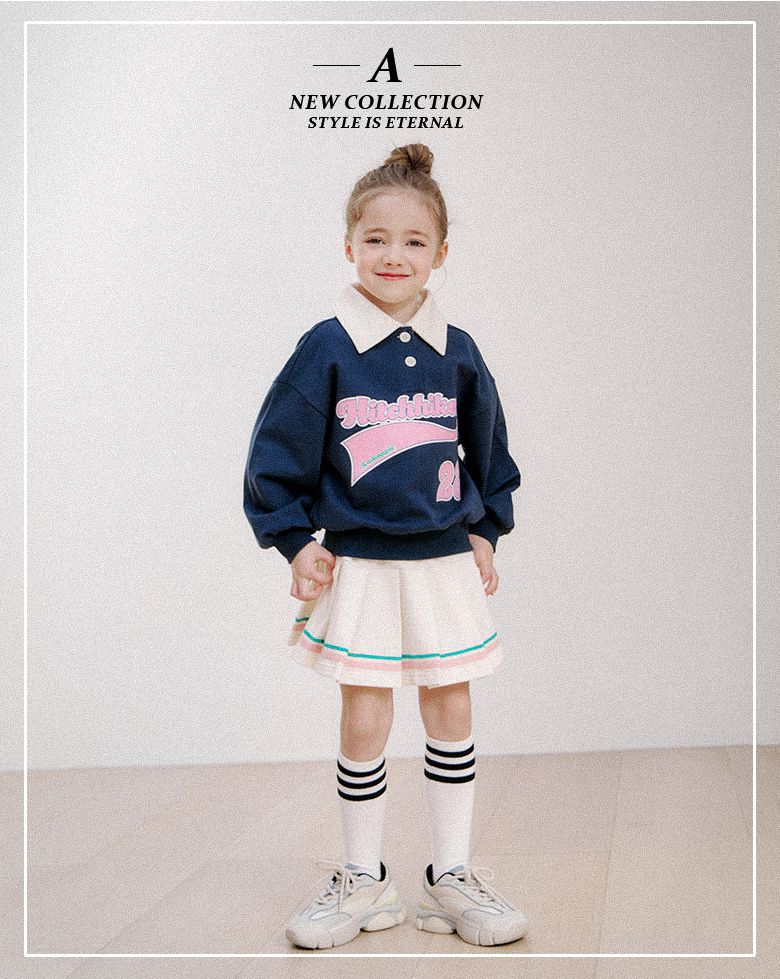 • 品名:少女休閒翻領上衣X百褶裙套裝