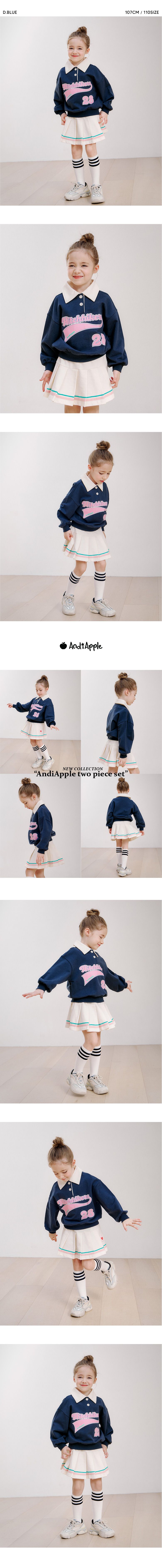 韓國 AndiApple - 少女休閒翻領上衣X百褶裙套裝