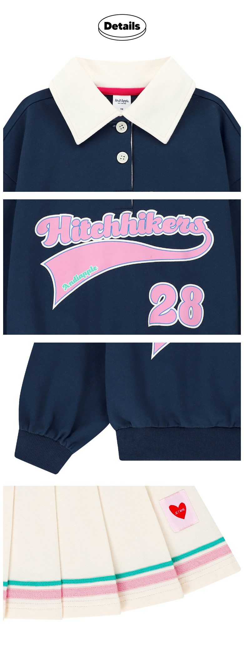 韓國 AndiApple - 少女休閒翻領上衣X百褶裙套裝-海軍藍X象牙白