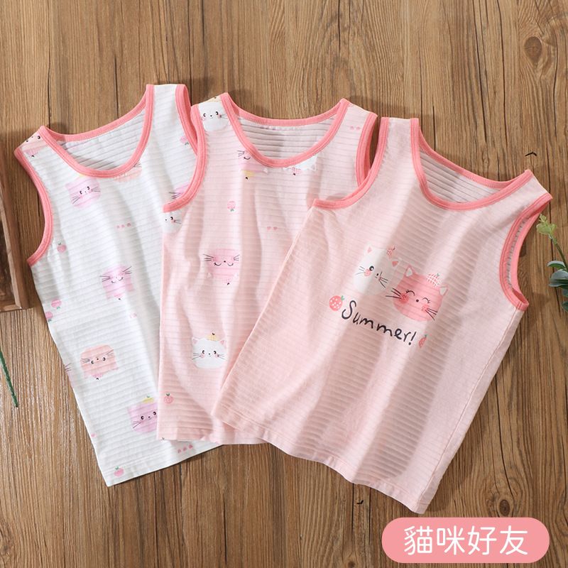 竹節棉透氣無袖背心(三件組)-貓咪好友-白+粉