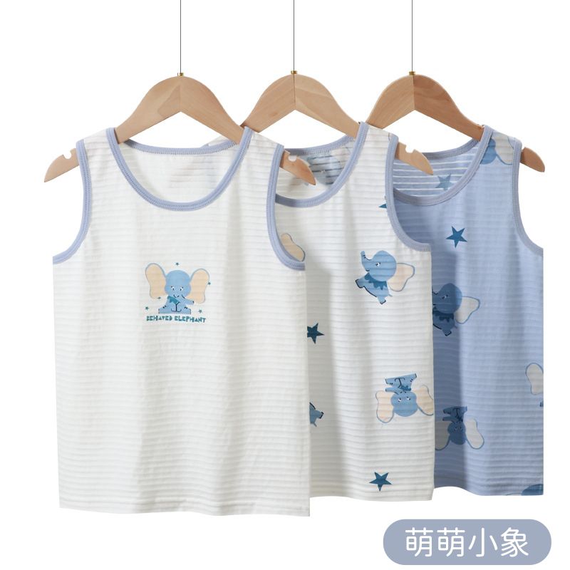 MAMDADKIDS - 竹節棉透氣無袖背心(三件組)-斑馬-白+淺藍