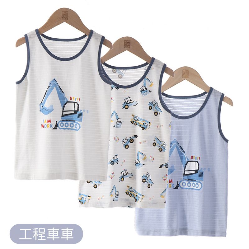 MAMDADKIDS - 竹節棉透氣無袖背心(三件組)-恐龍-米白+灰