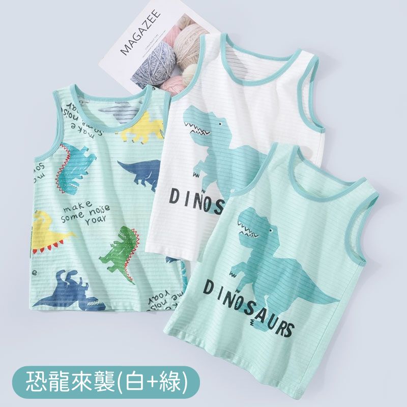 MAMDADKIDS - 竹節棉透氣無袖背心(三件組)-恐龍來襲-白+綠
