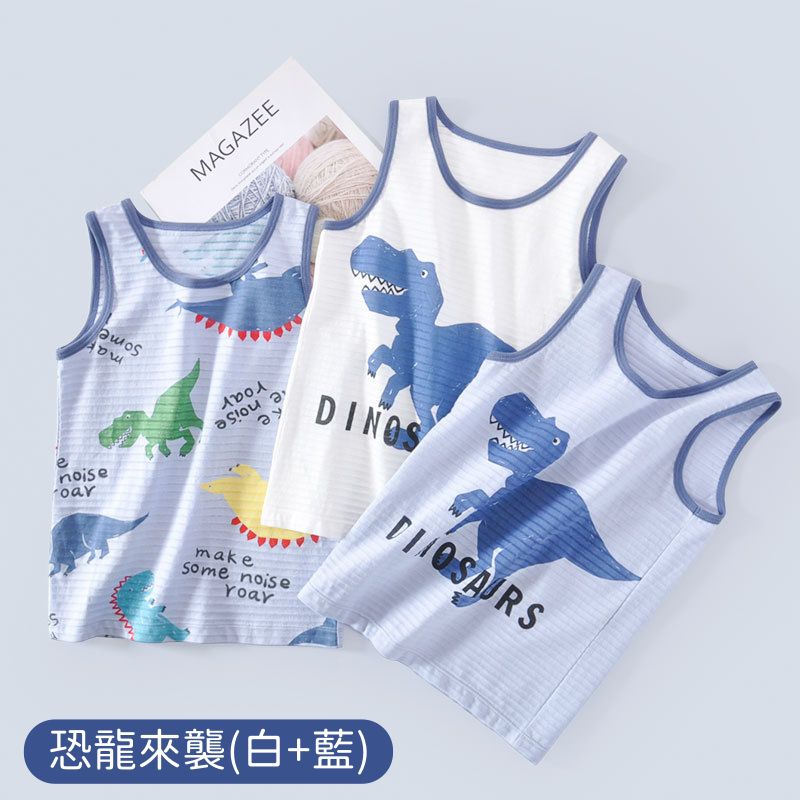 MAMDADKIDS - 竹節棉透氣無袖背心(三件組)-恐龍-白+淺綠