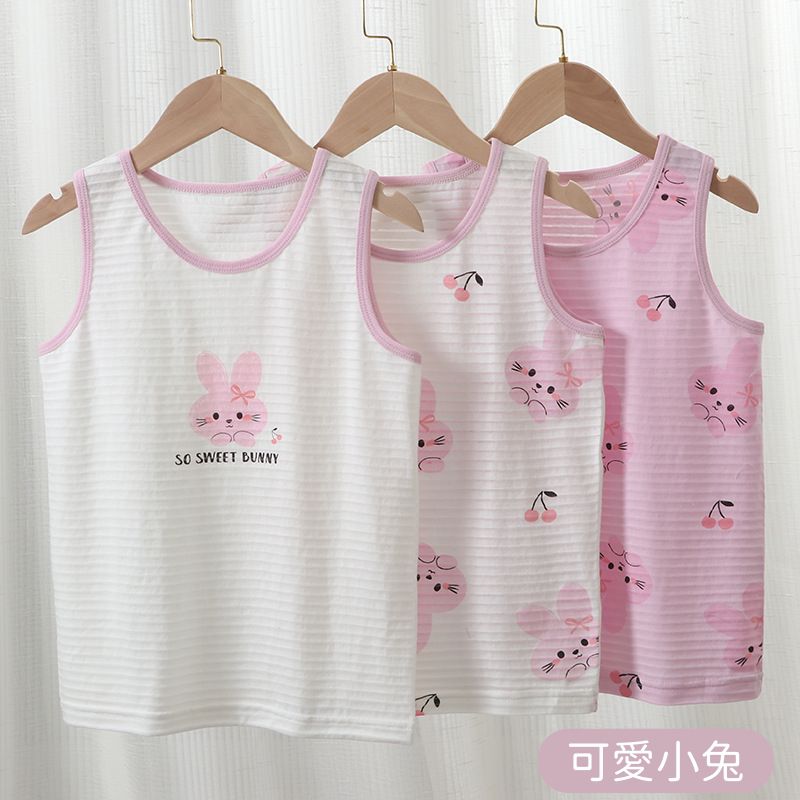 MAMDADKIDS - 竹節棉透氣無袖背心(三件組)-兔子-白+粉紅