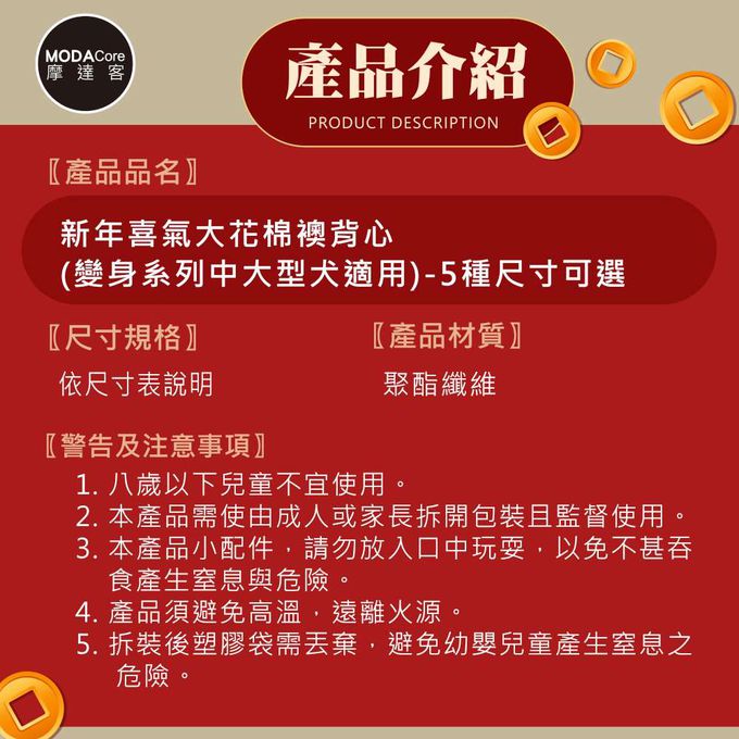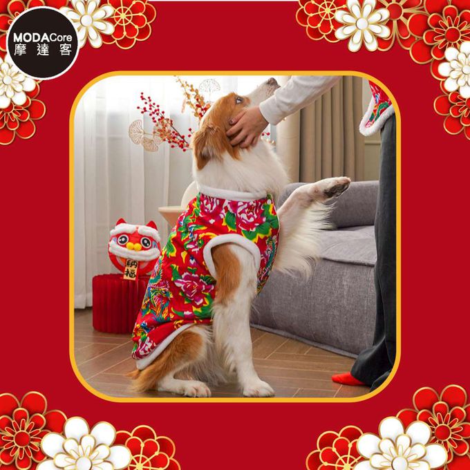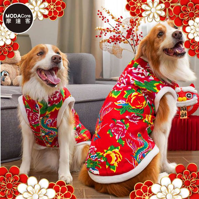 品名:摩達客寵物_新年喜洋洋大花棉襖背心大狗服飾(變身系列中大型犬適用)多尺寸可選
