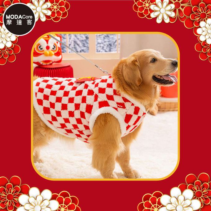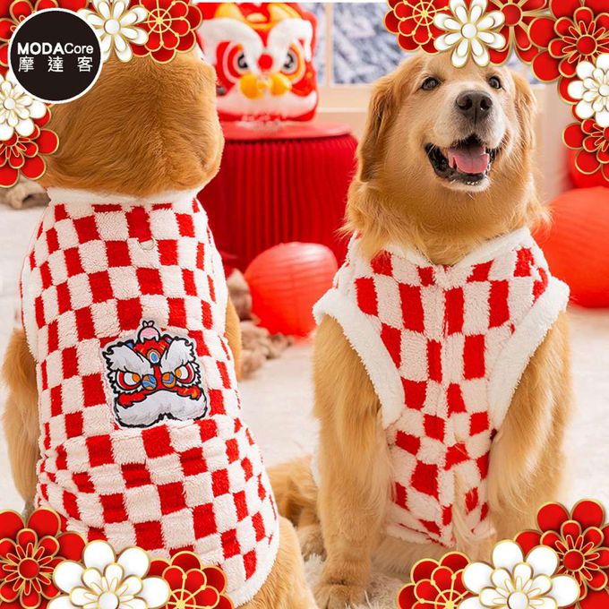 品名:摩達客寵物_紅白開運喜氣棋盤醒獅保暖寵物衣服(可愛中大型犬狗適用)新春新年多尺寸可選
