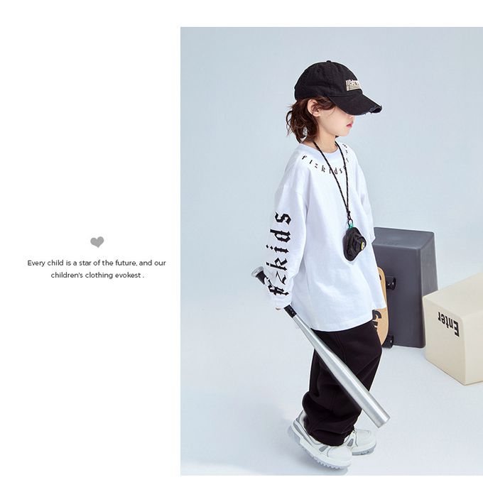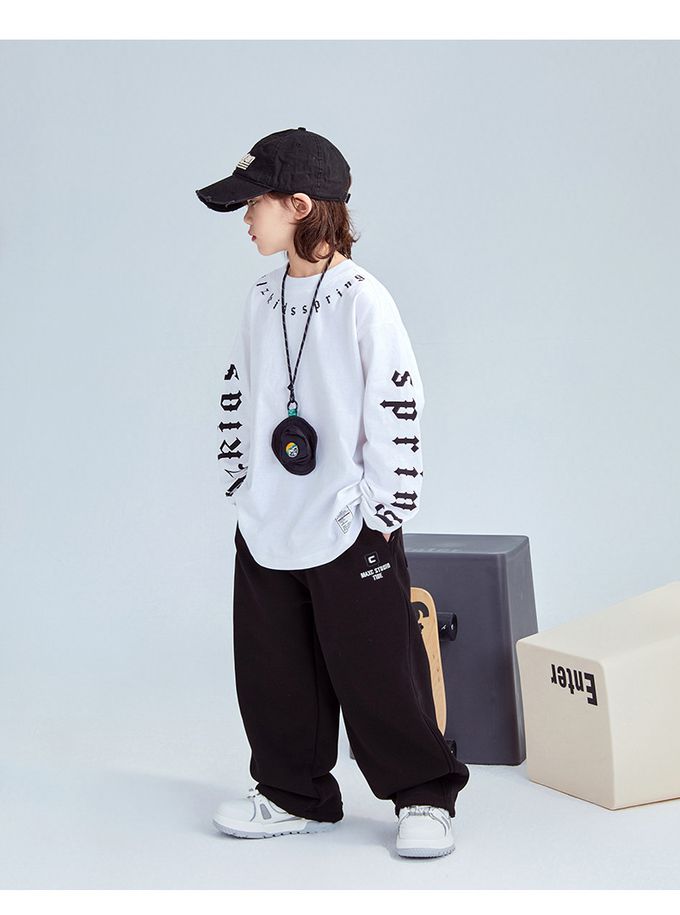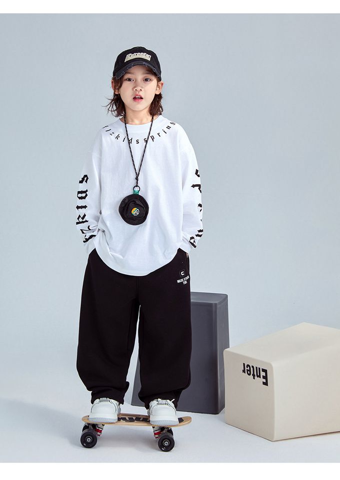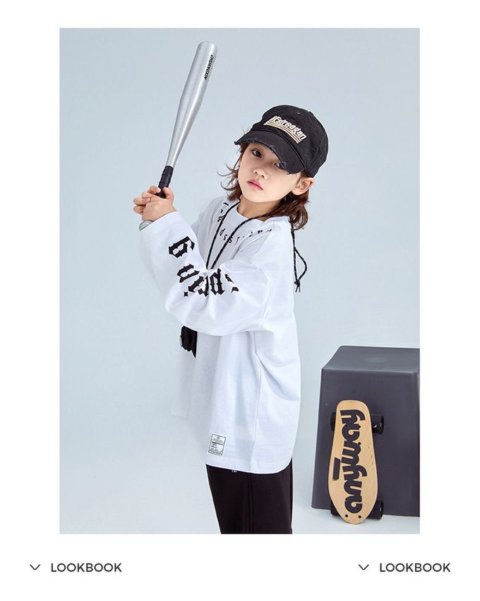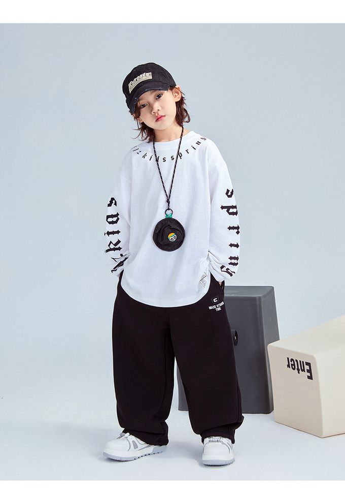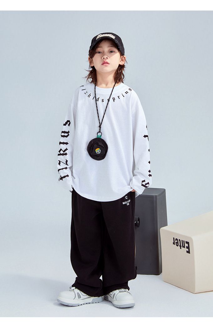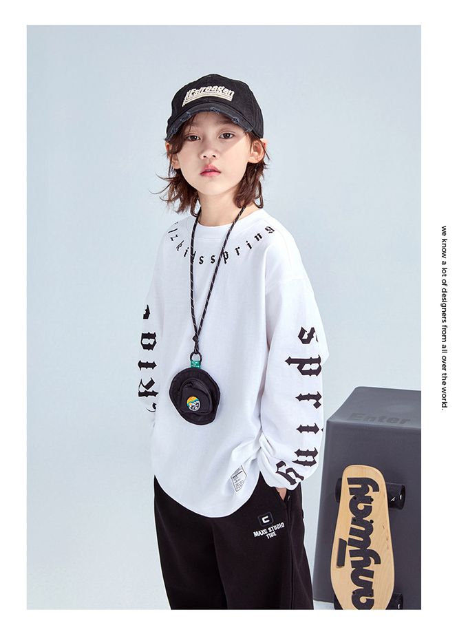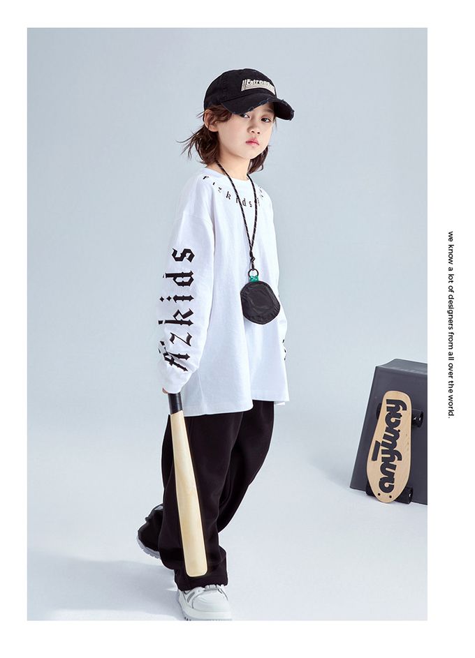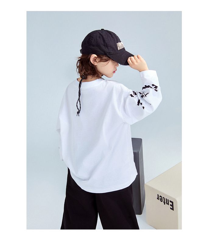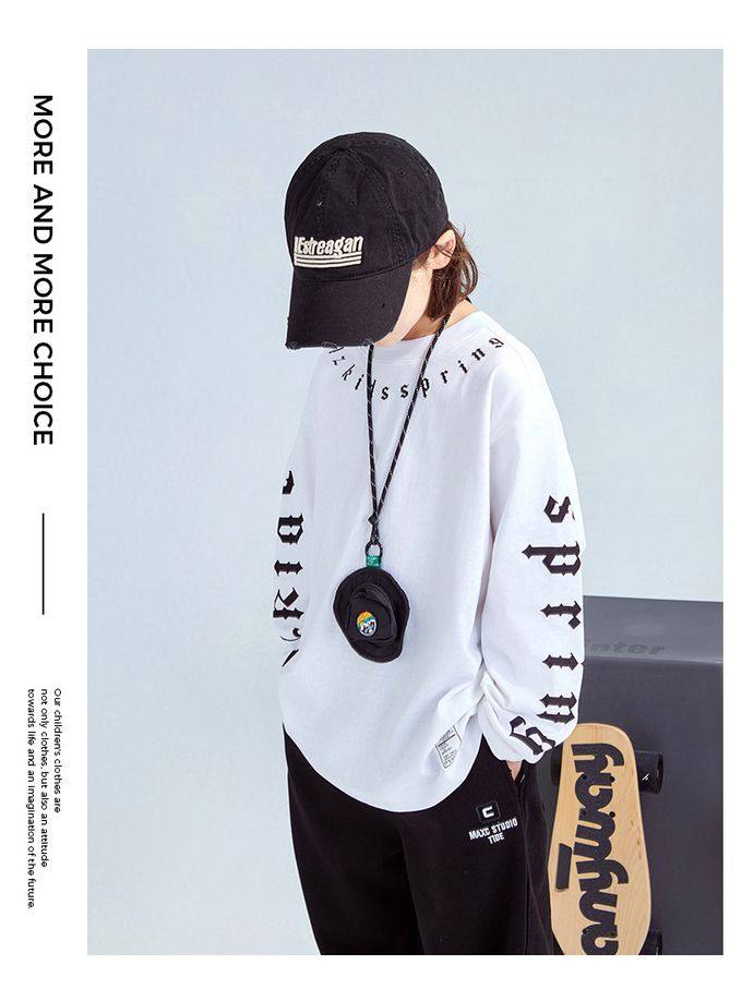 純棉圓領寬鬆長袖上衣-潮流字母印花-白色
