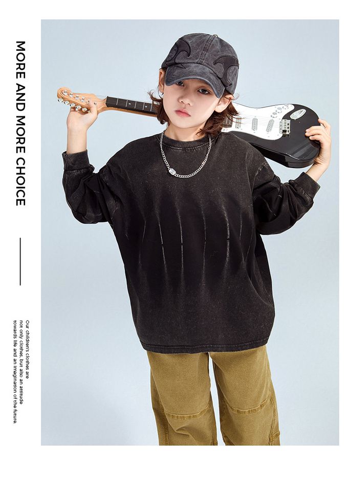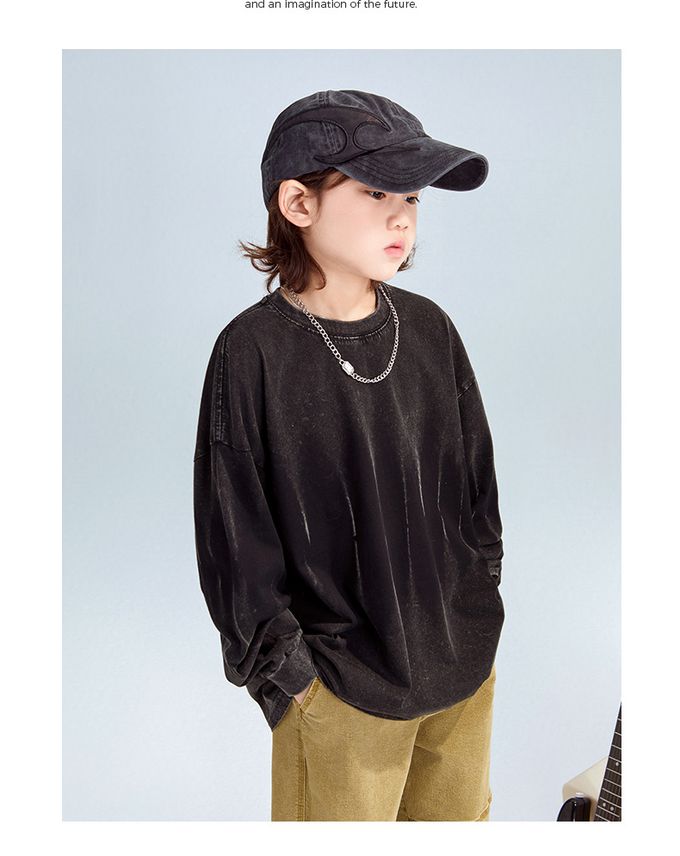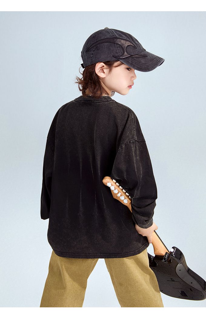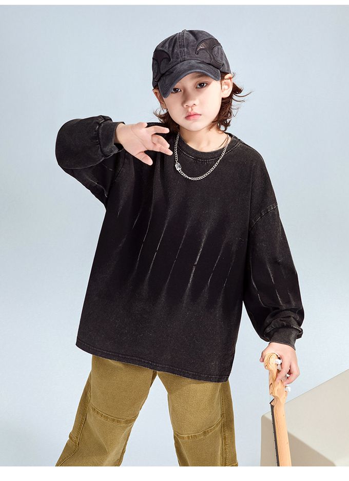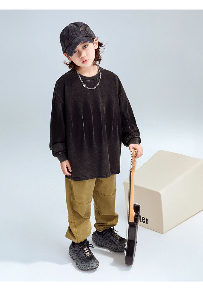 純棉圓領寬鬆長袖上衣-紮染設計-黑色