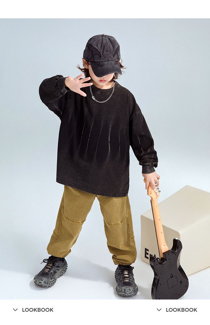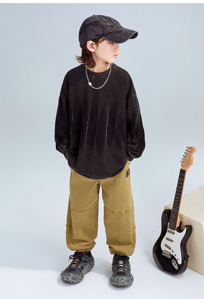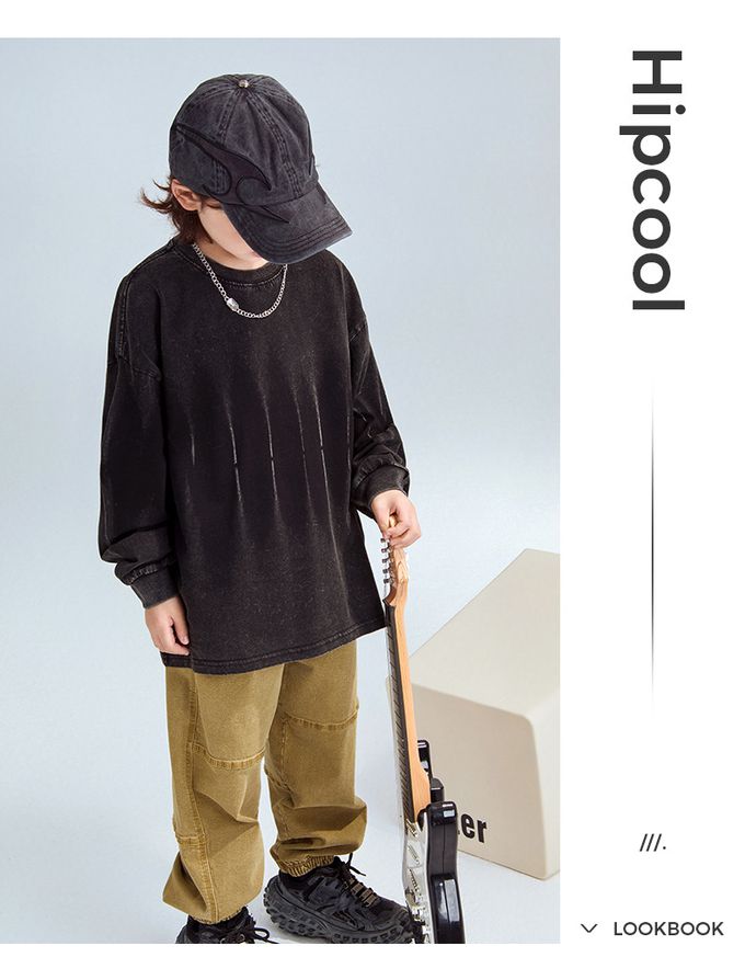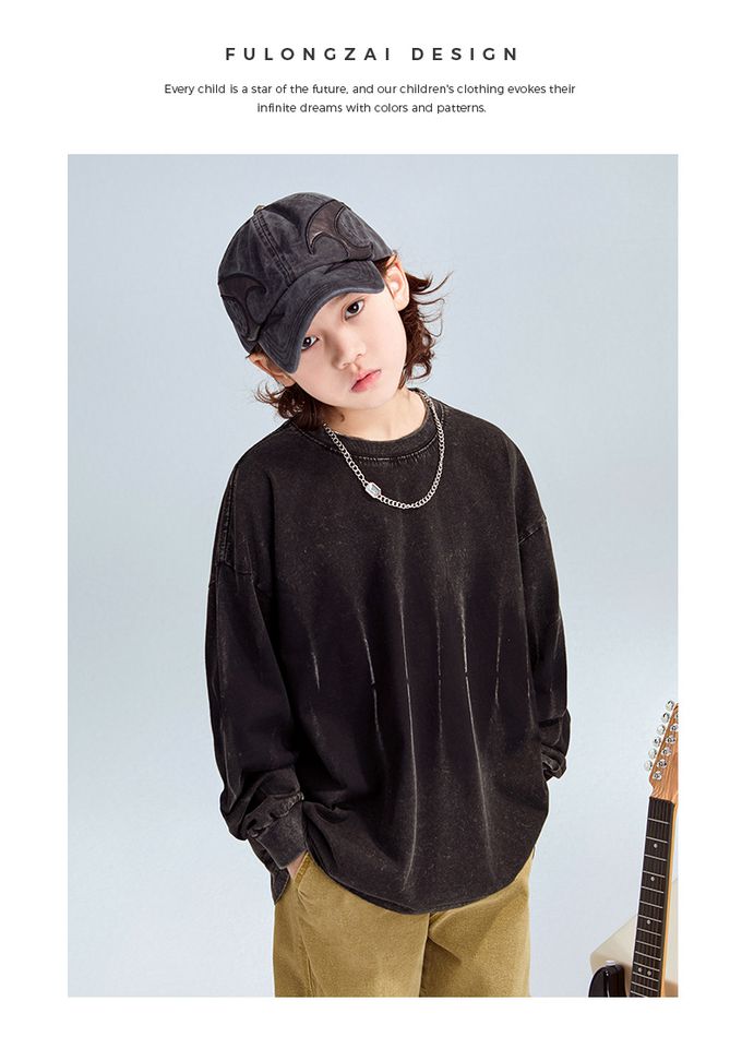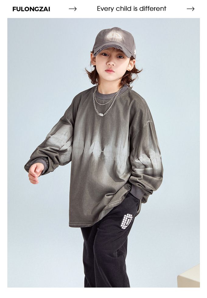純棉圓領寬鬆長袖上衣-紮染設計-黑色