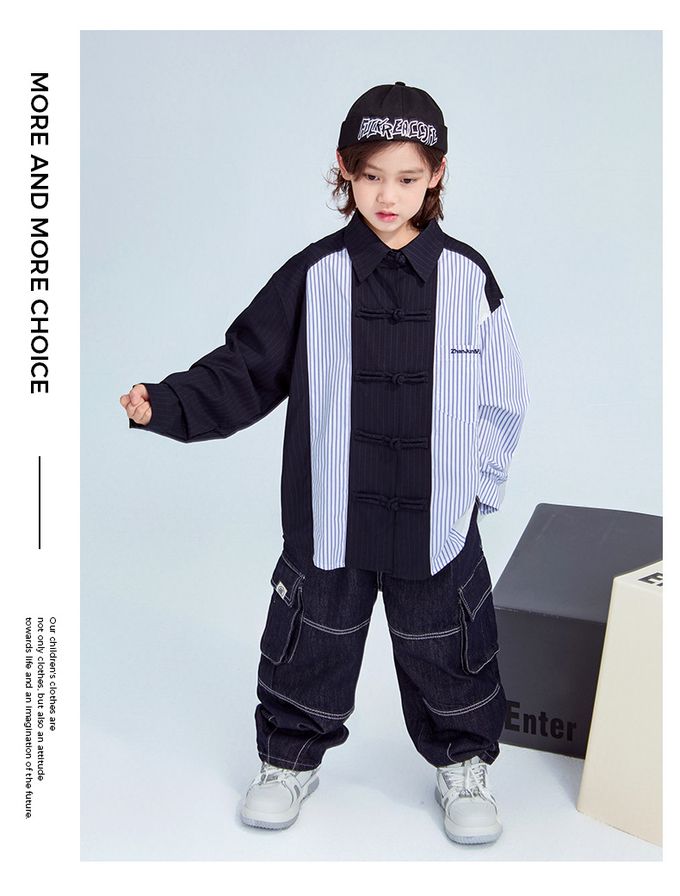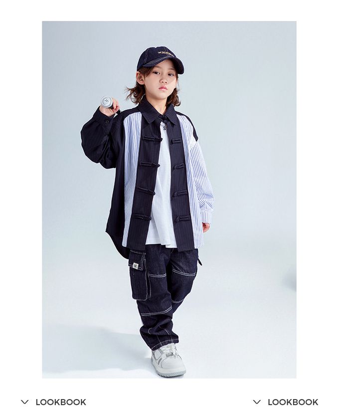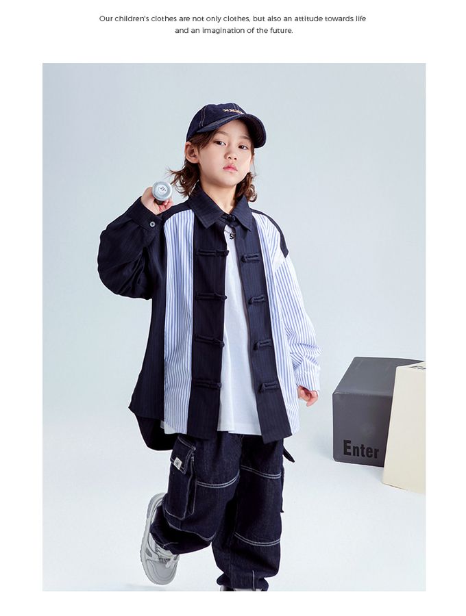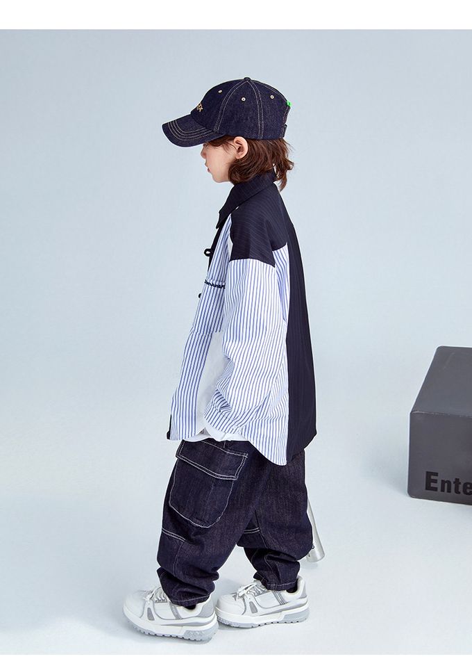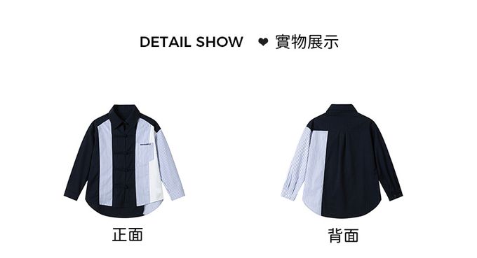 品名:率性異材質拼接長袖襯衫