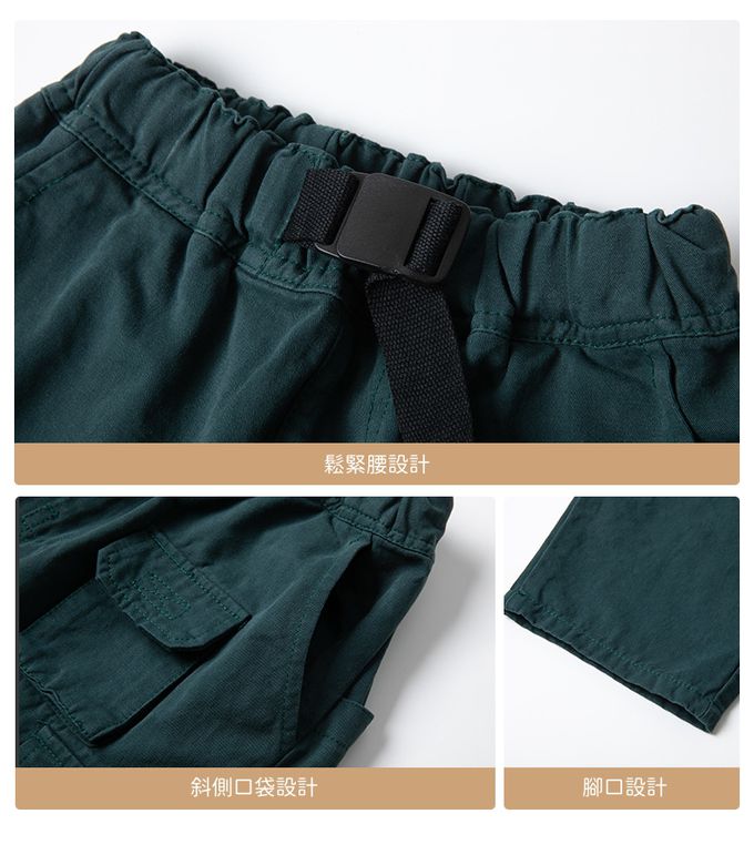 純棉腰鬆緊休閒長褲-斜側口袋-綠色