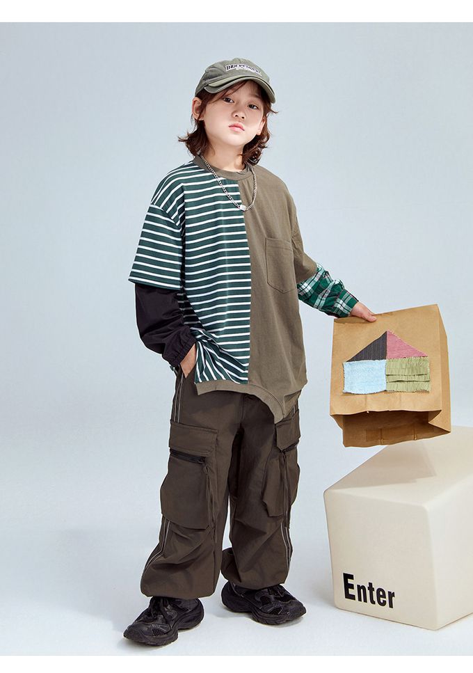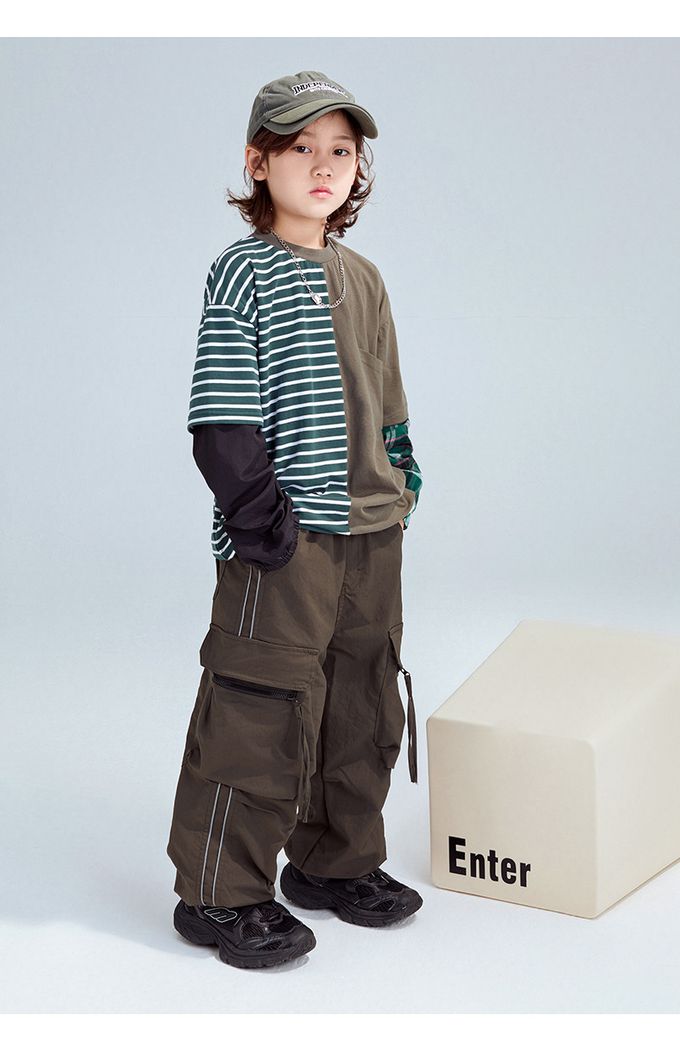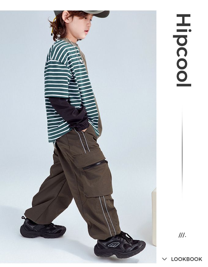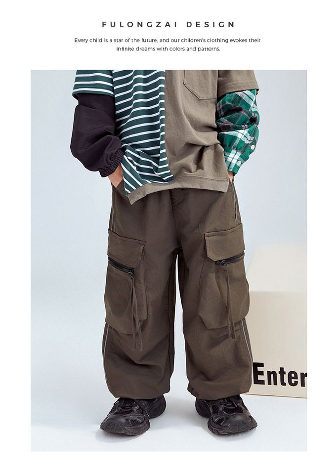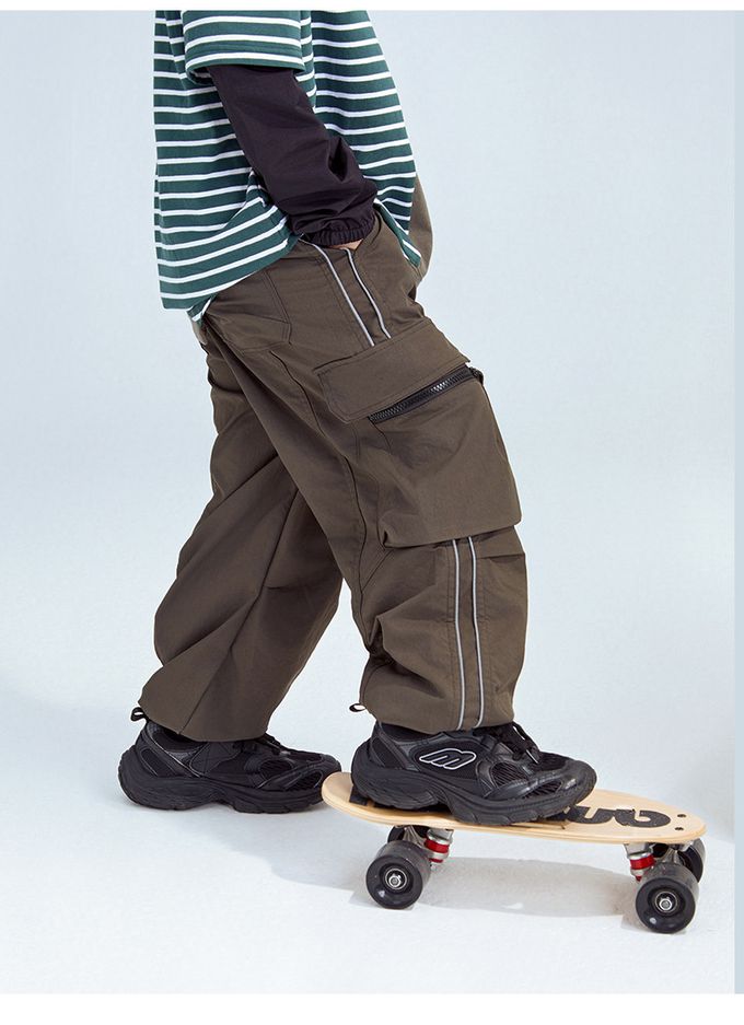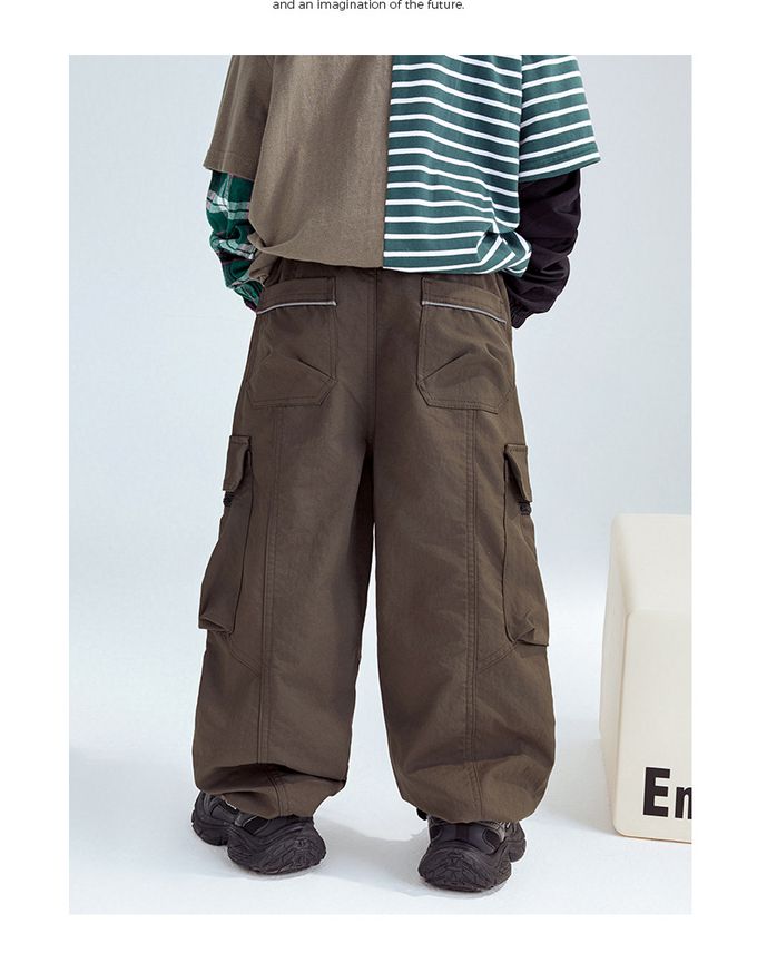 腰鬆緊休閒百搭束口長褲-大口袋-軍綠色