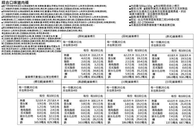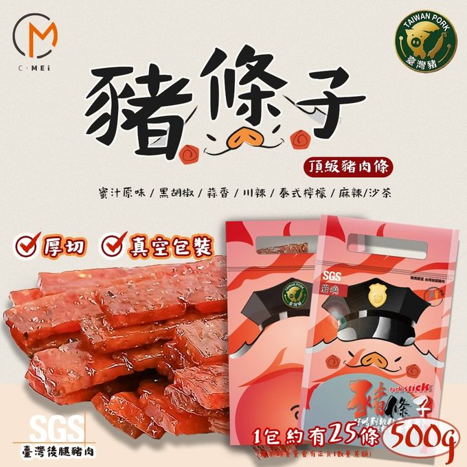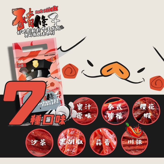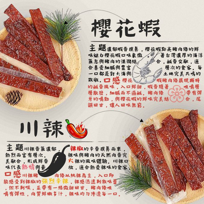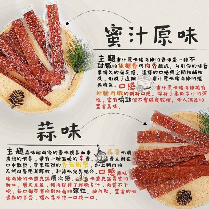 品名:台灣嚴選厚切多汁豬肉條 500gx2入 (蜜汁原味/蒜味/川辣/泰式檸檬/黑胡椒/沙茶/櫻花蝦/綜合)
