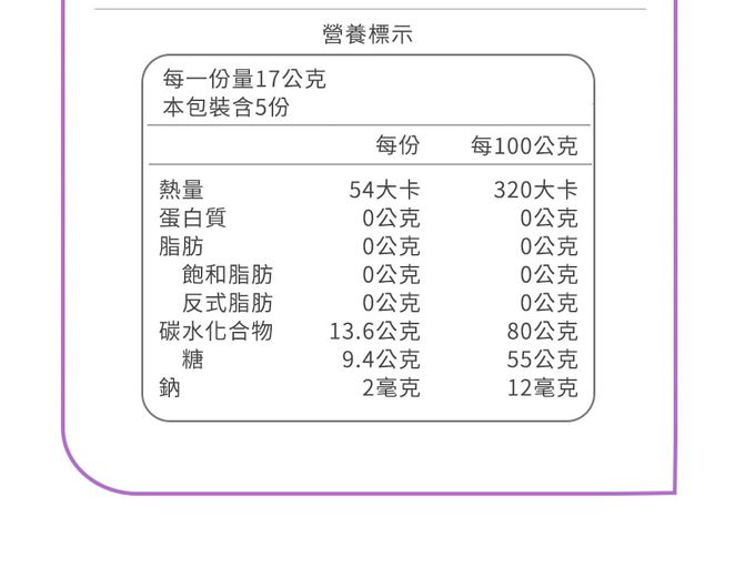 注意事項:開封後建議放置於乾燥陰涼處或冷藏,避免日曬