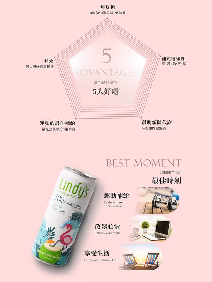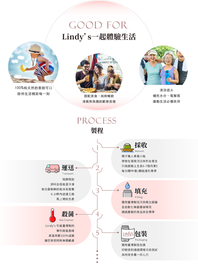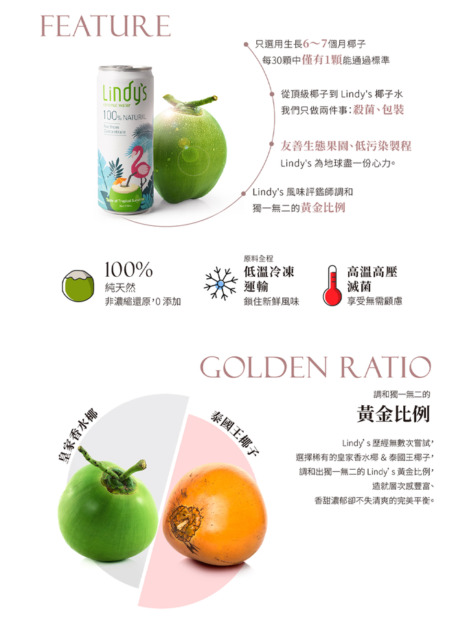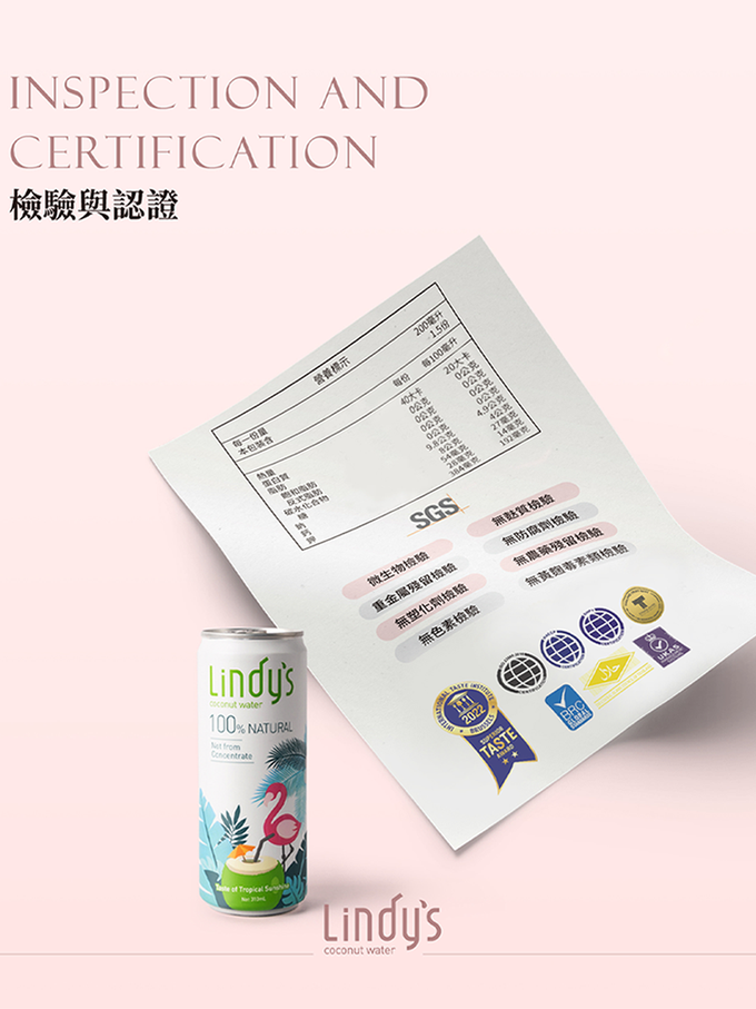 品名:Lindy's 100% 原味椰子水310ml (24入箱購)