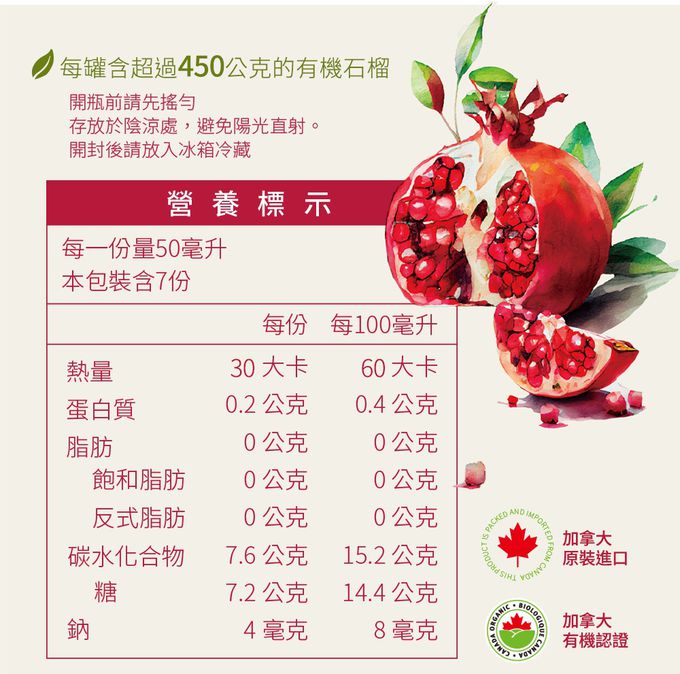 有機石榴原汁350ml(12入箱購)-350mlx12入