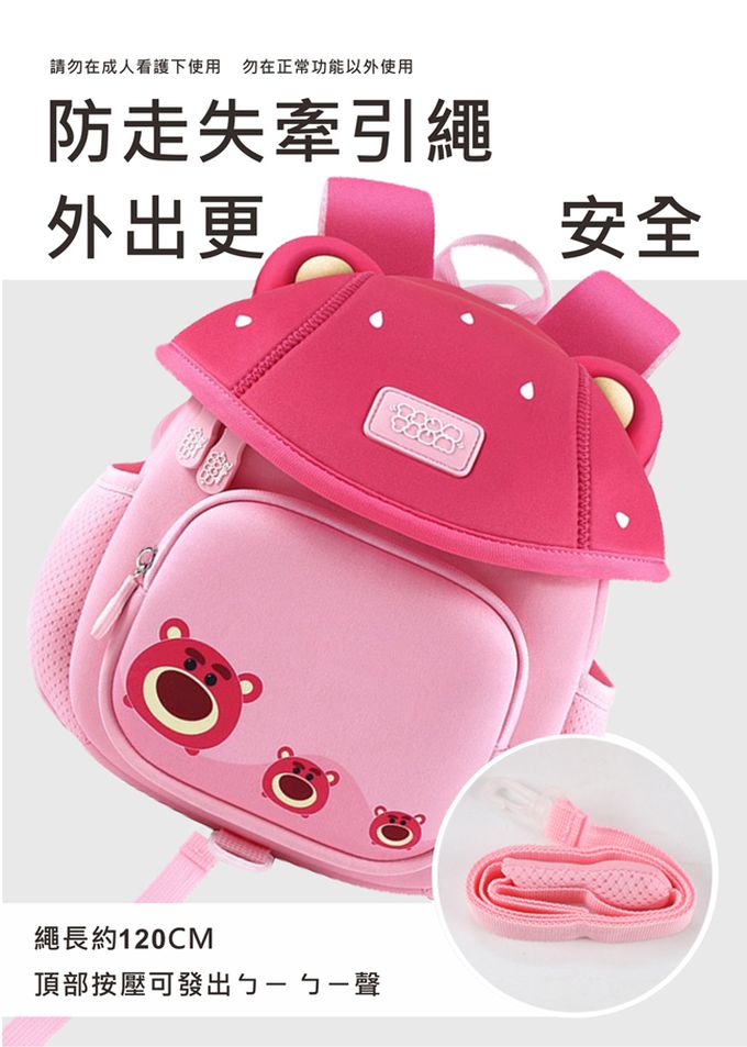 ▲ 迪士尼正版授權▲ 童趣造型與實用兼具 ▲ 加大容量 透氣不悶熱▲ 輕巧舒適 防走失牽引繩▲ 布料密度高 防水耐髒▲ 超輕量 雙肩無負擔▲ 左右口袋層 + 內裡夾層 ▲ 適合年齡 80CM以上(學習走路的寶寶們)產品材質: 聚酯纖維、氯丁橡膠產品重量: 350g產品尺寸: 25 x 10.5 X 26 ±3% (cm)