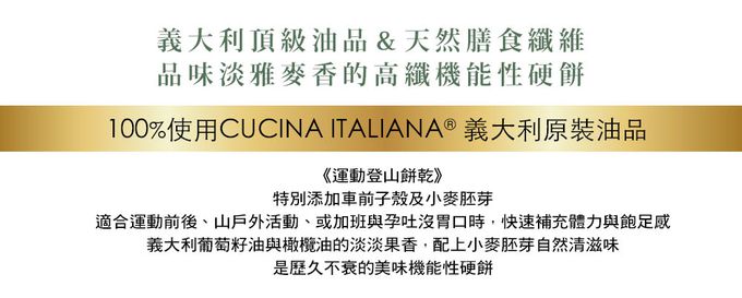 (全素可享) 義大利葡萄籽油與橄欖油的淡淡果香,配上小麥胚芽自然清甜滋味是歷久不衰的健康機能性硬餅 !