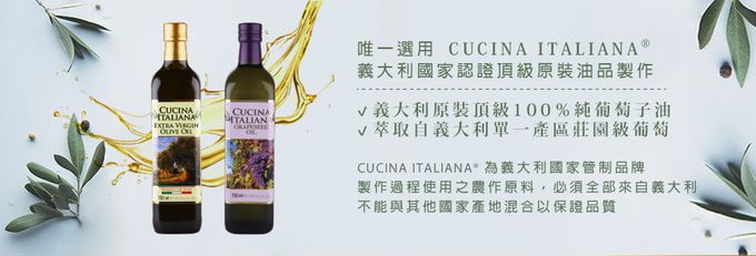 很敢用油:用最好的油,100%義大利進口首席CUCINA ITALIANA 純葡萄籽油&頂級原萃橄欖油