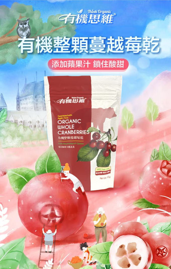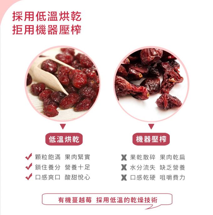 成分:有機蔓越莓乾、有機濃縮蘋果汁、有機葵花籽油