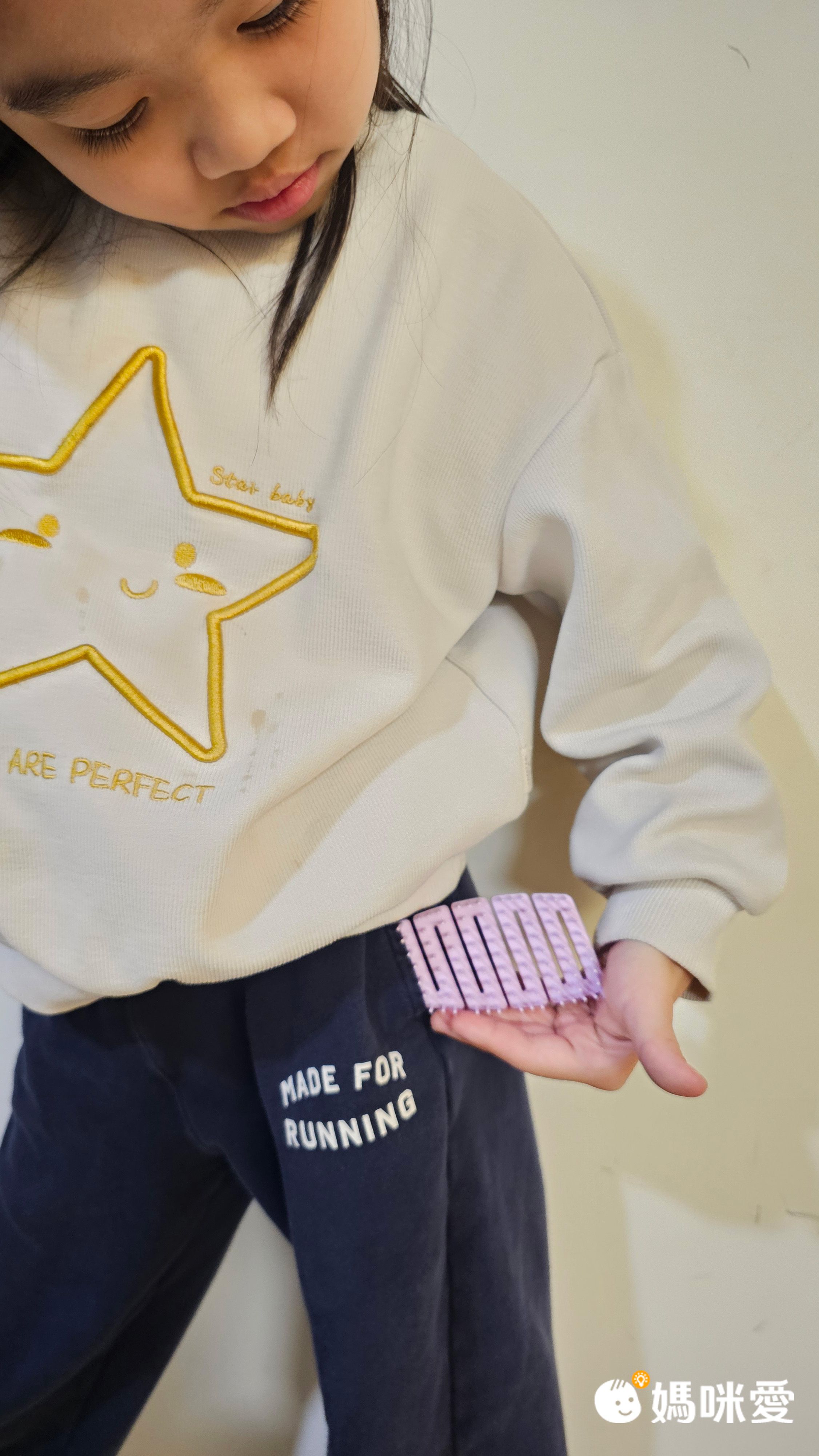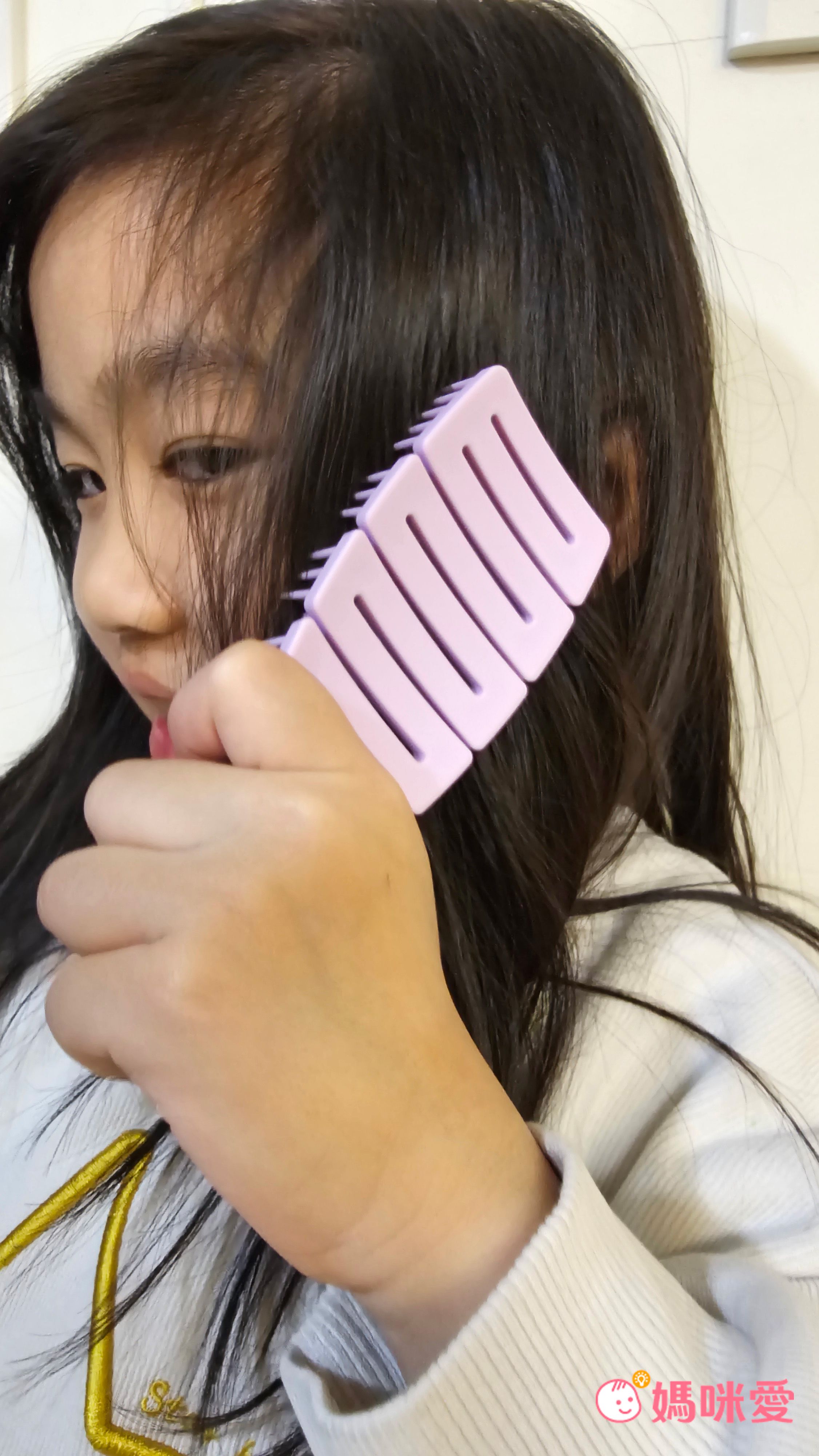 梳子真的很輕巧,完全是孩子可以輕鬆抓握的大小!重量輕盈,跟手機相比,手機真的重太多了XDD