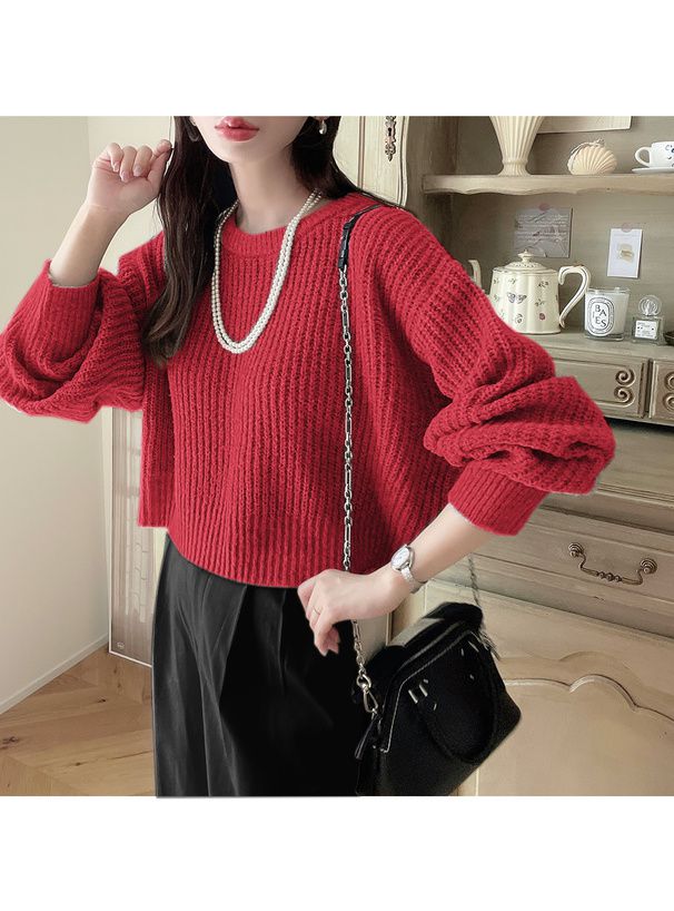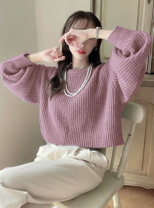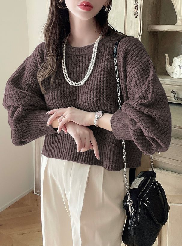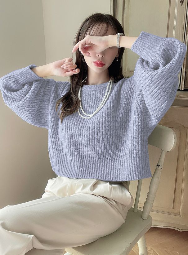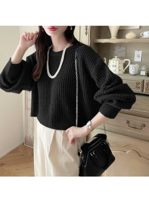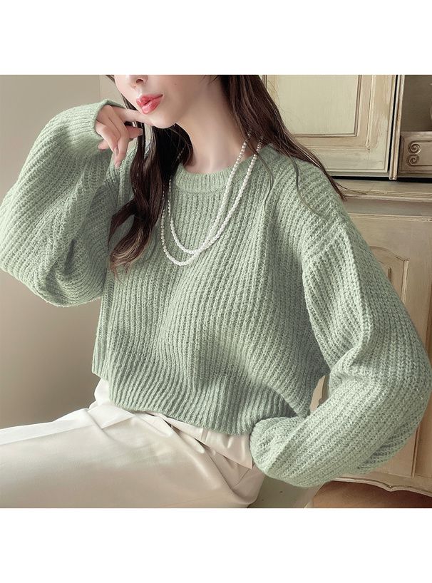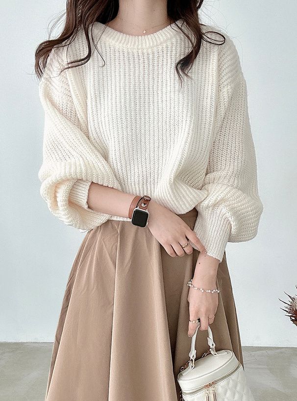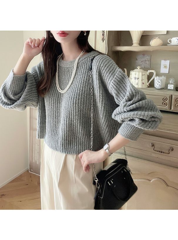 日本 GRL - 典雅粗針織圓領短版上衣-象牙白 (F)