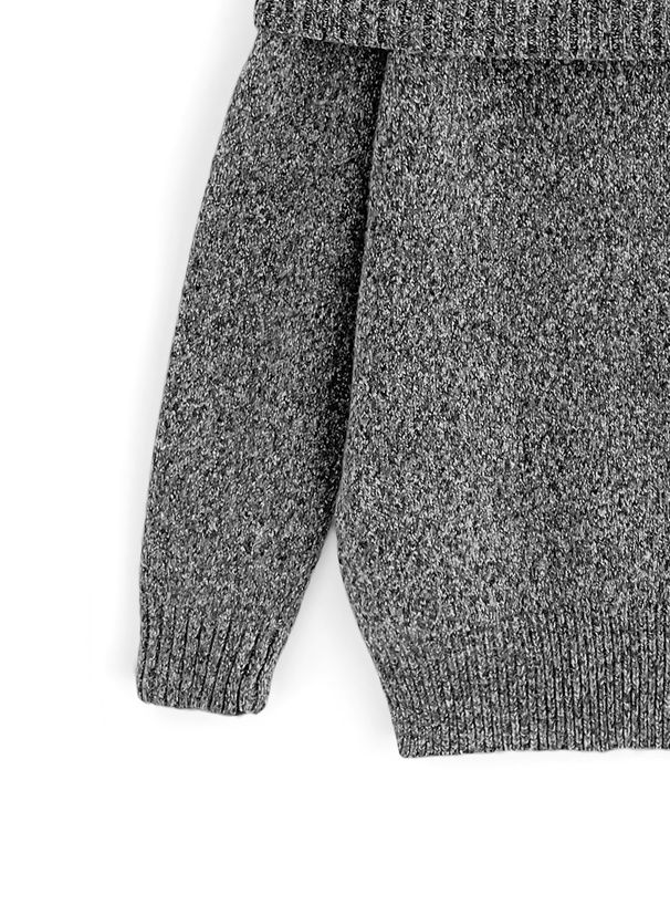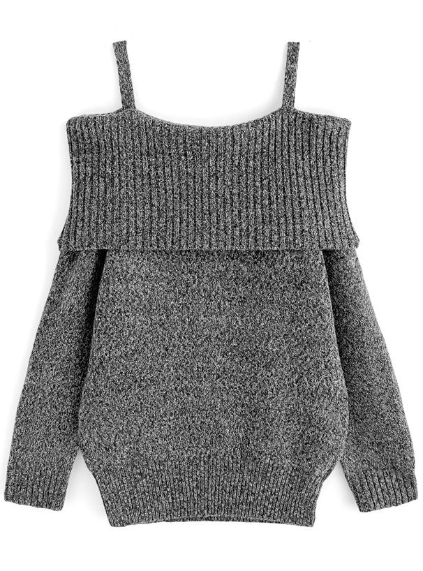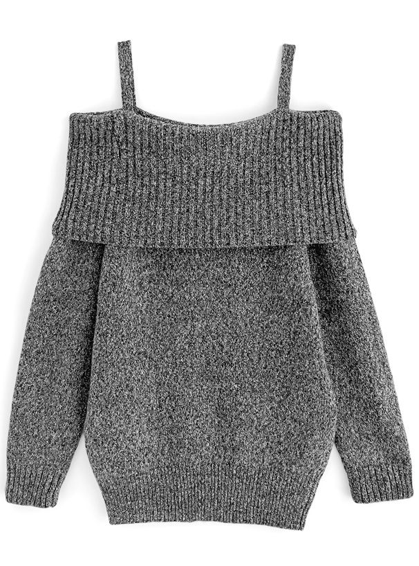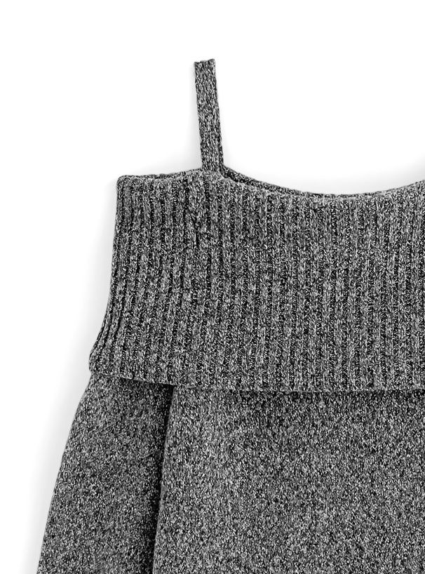 日本 GRL - 大翻領露肩魅力針織短洋裝-灰 (F)