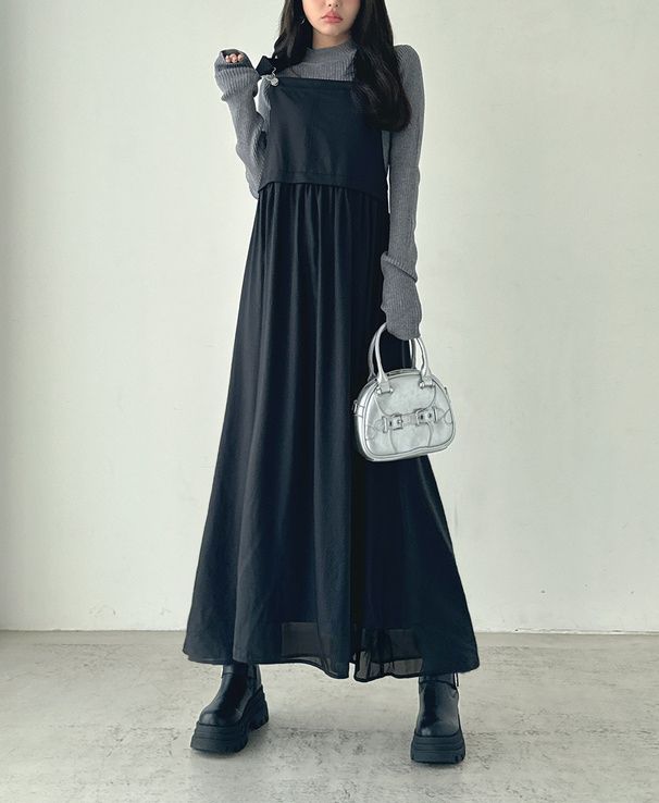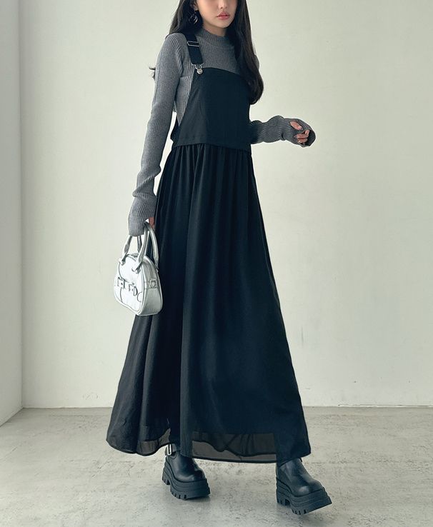 酷甜感雪紡飄逸裙擺吊帶長洋裝