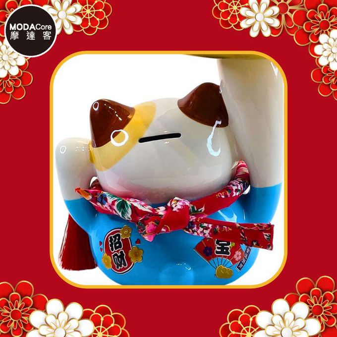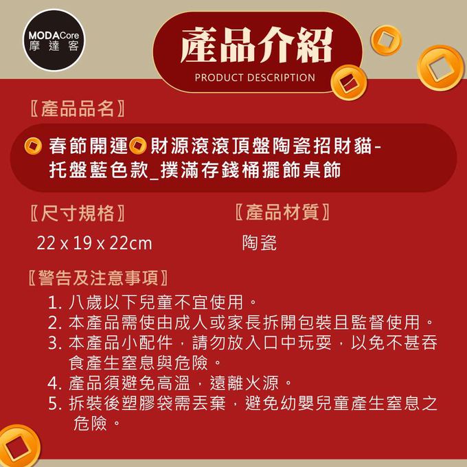 品名:◉春節開運◉財源滾滾頂盤陶瓷招財貓-托盤藍色款_撲滿存錢桶擺飾桌飾