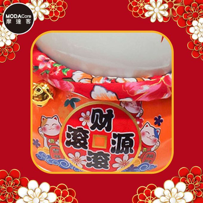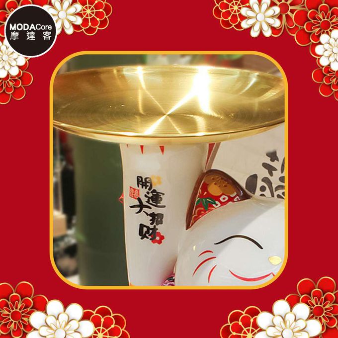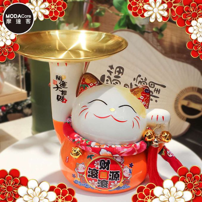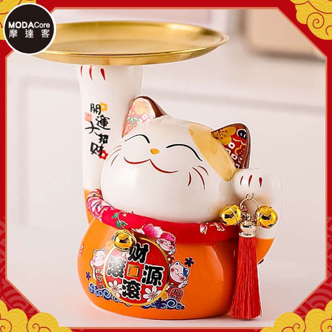 品名:◉春節開運◉財源滾滾頂盤陶瓷招財貓-托盤橘色款_撲滿存錢桶擺飾桌飾