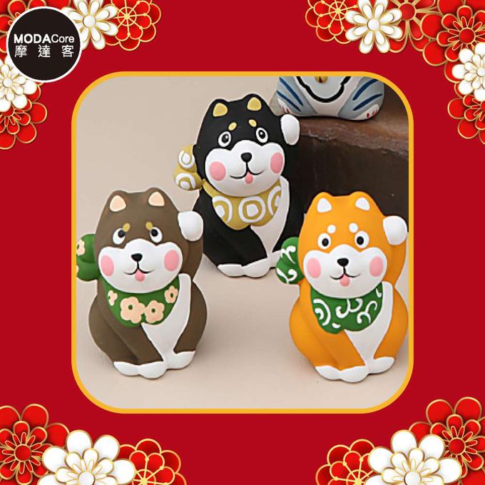 祈願招福-超萌三色柴犬狗迷你陶瓷開運擺飾三入組合