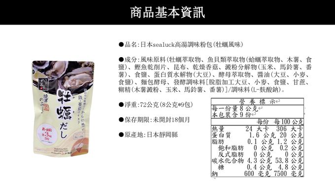 高湯調味粉包-牡蠣風味-8g/包,共9包