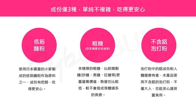 成分:低筋麵粉、粗糖、泡打粉