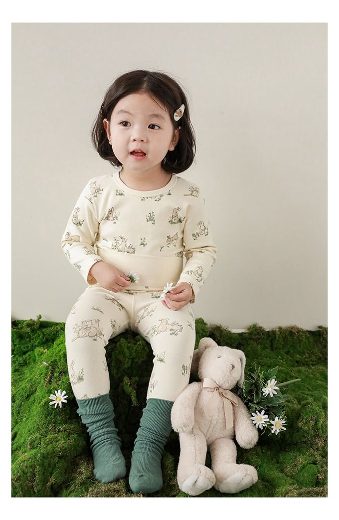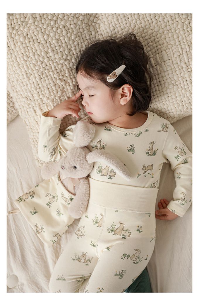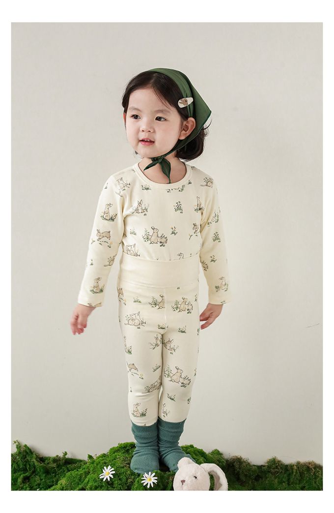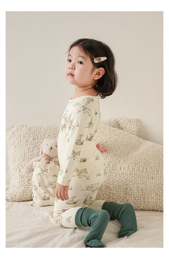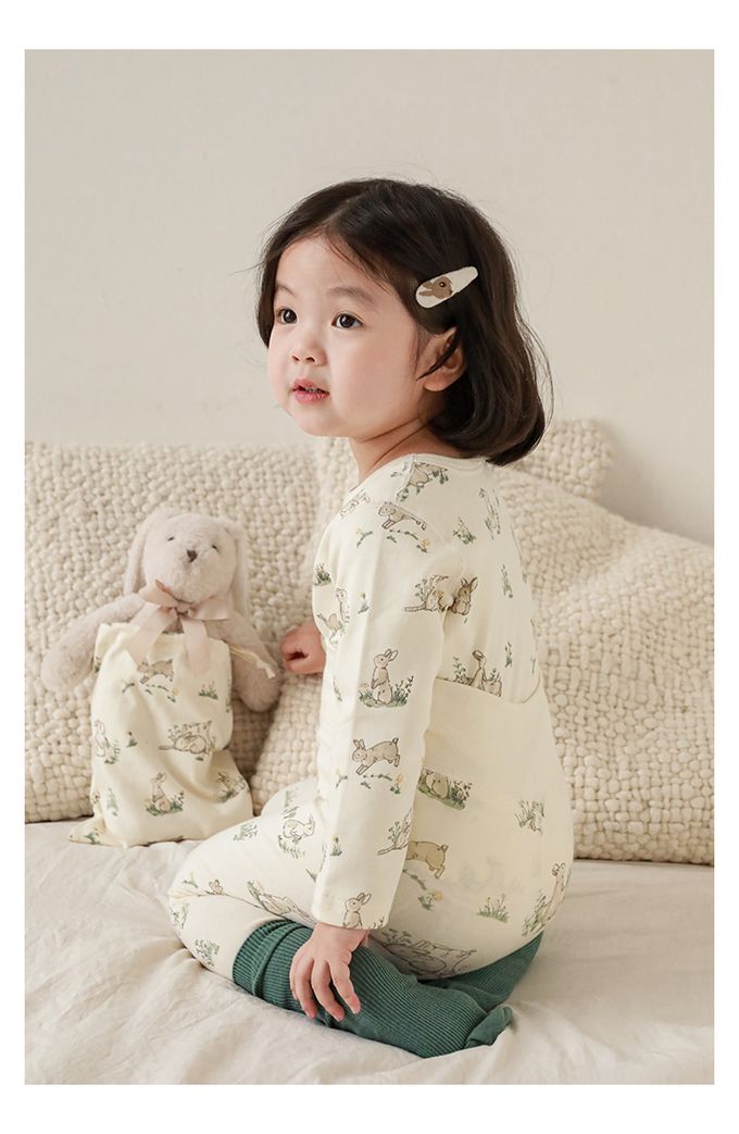 高彈舒適無骨縫制長袖家居服套裝-森林樹葉兔兔