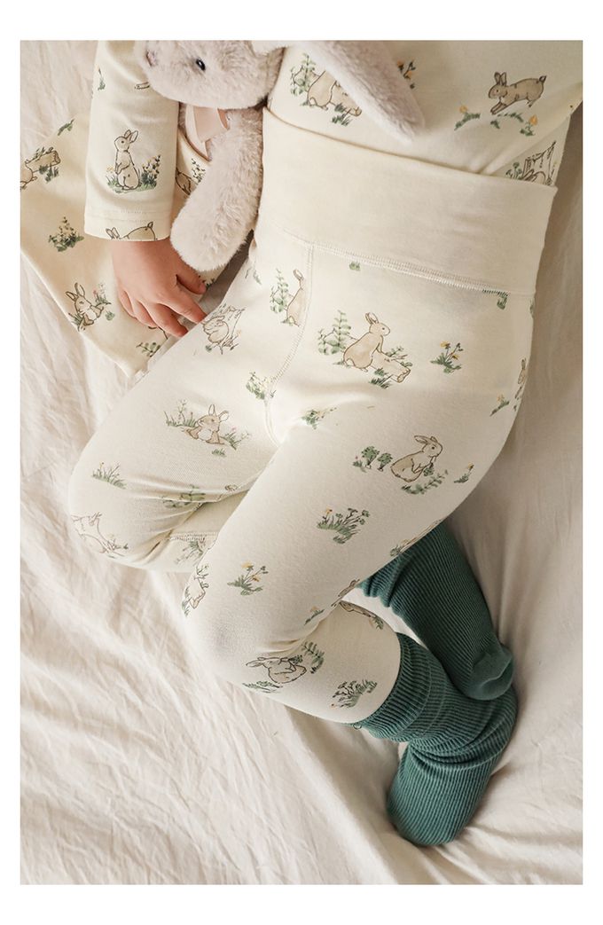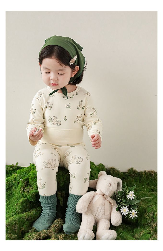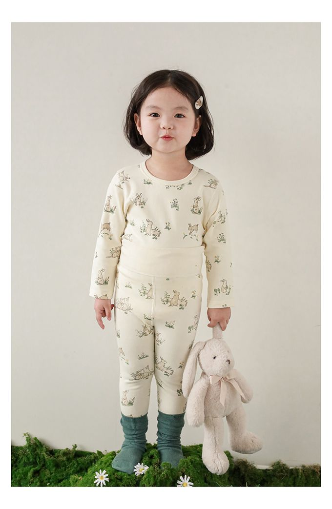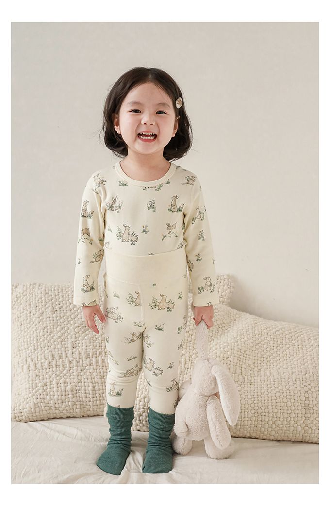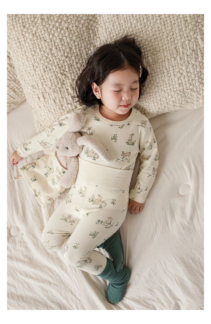 高彈舒適無骨縫制長袖家居服套裝-森林樹葉兔兔