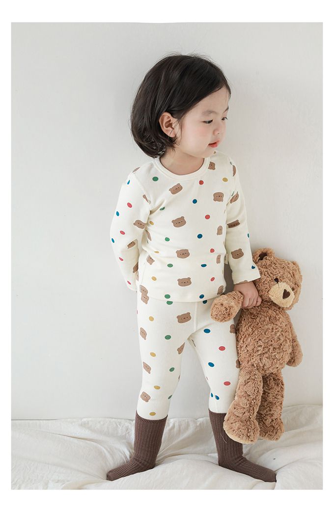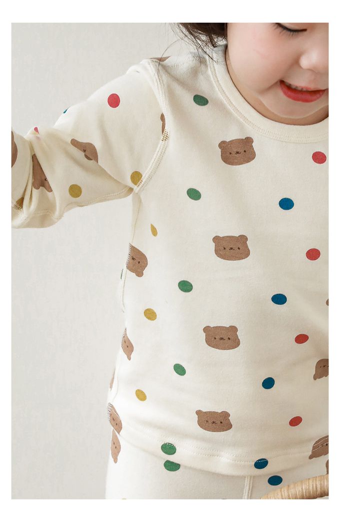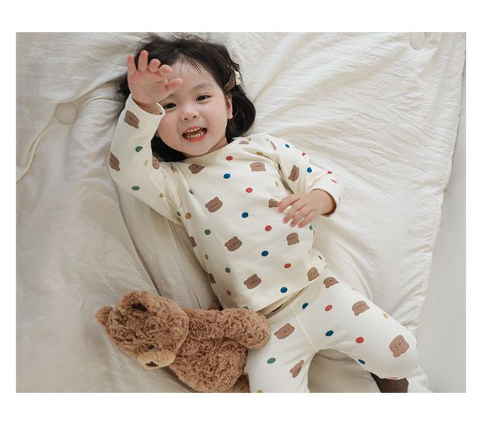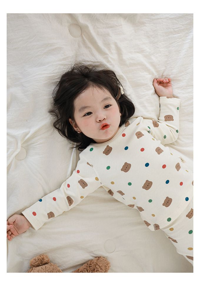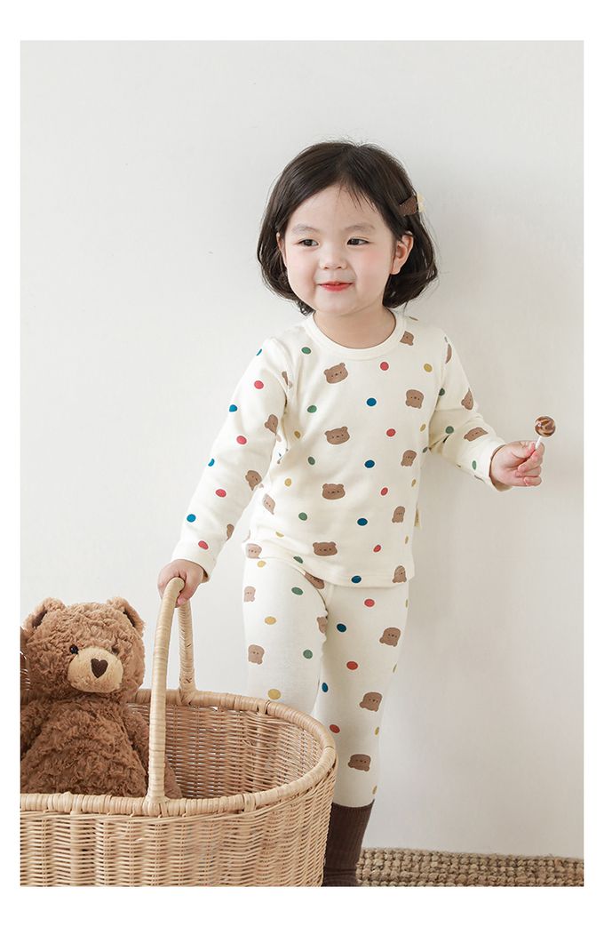高彈舒適無骨縫制長袖家居服套裝-棕色小熊