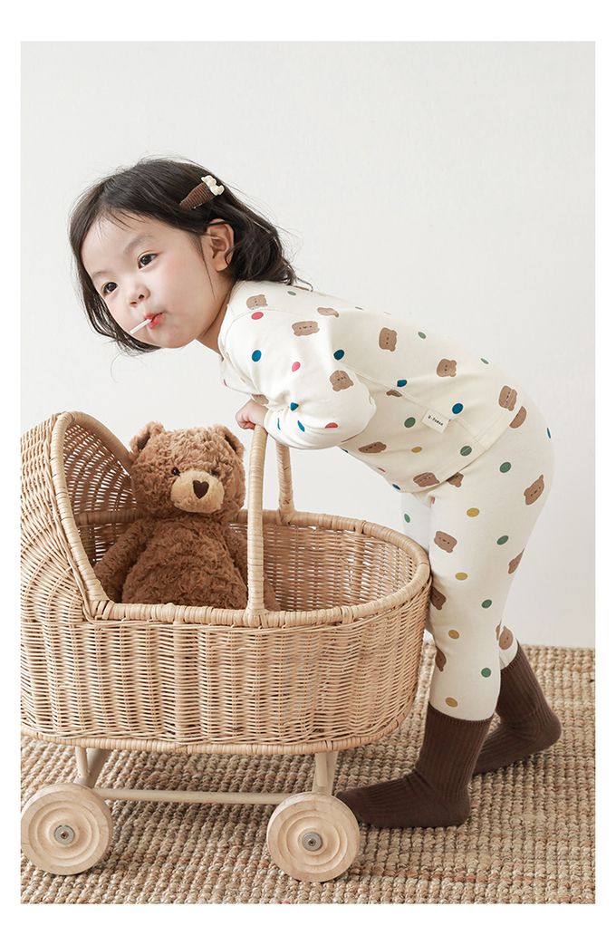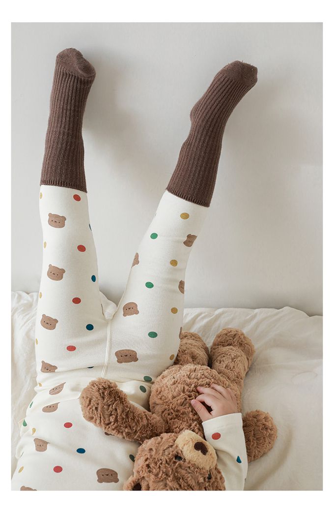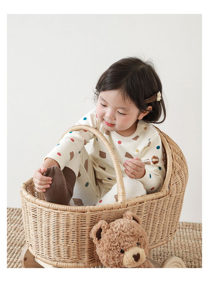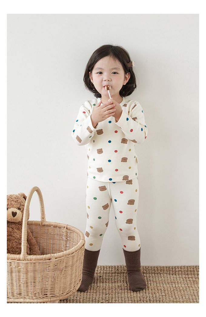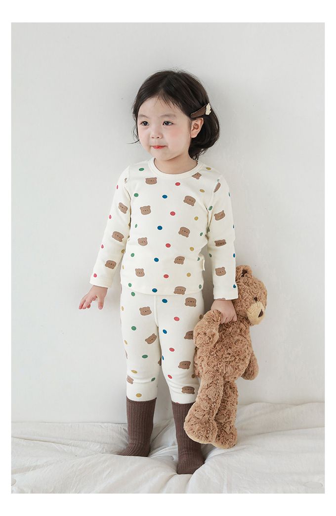 高彈舒適無骨縫制長袖家居服套裝-棕色小熊