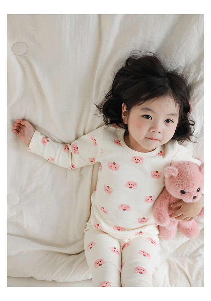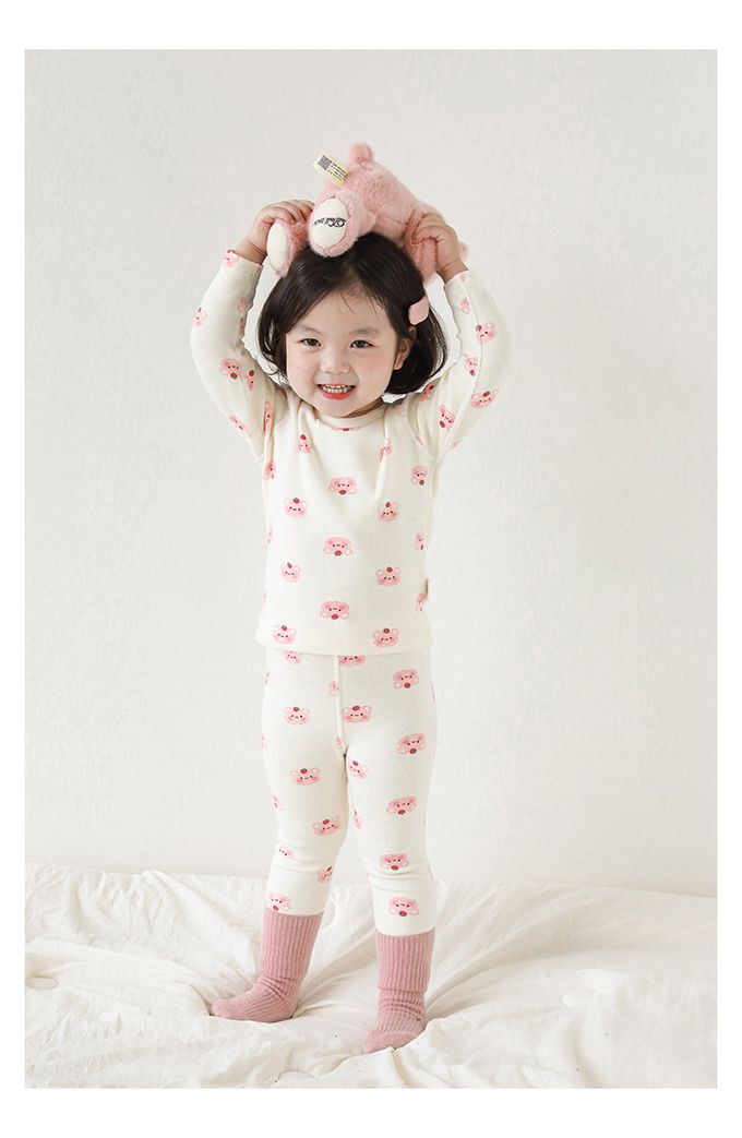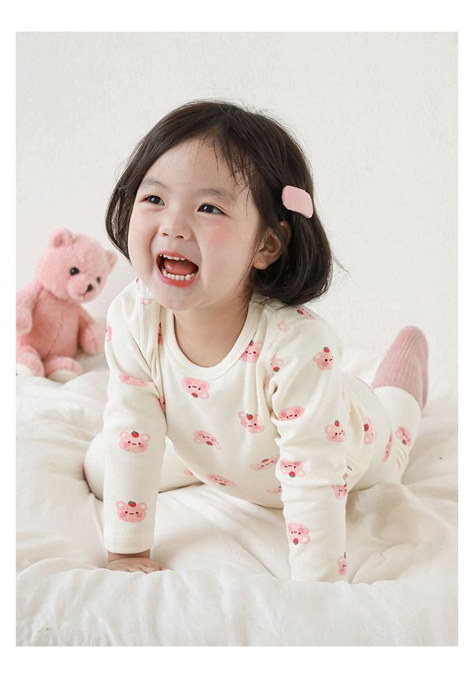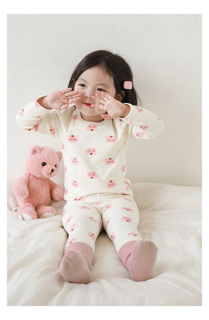 高彈舒適無骨縫制長袖家居服套裝-粉色小熊