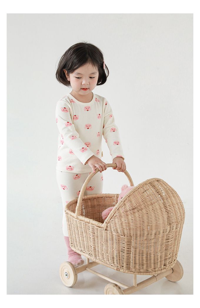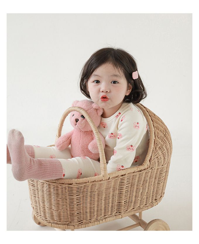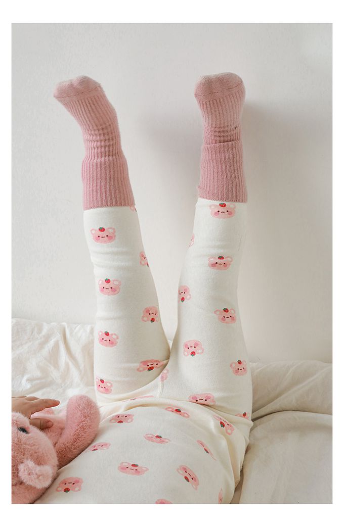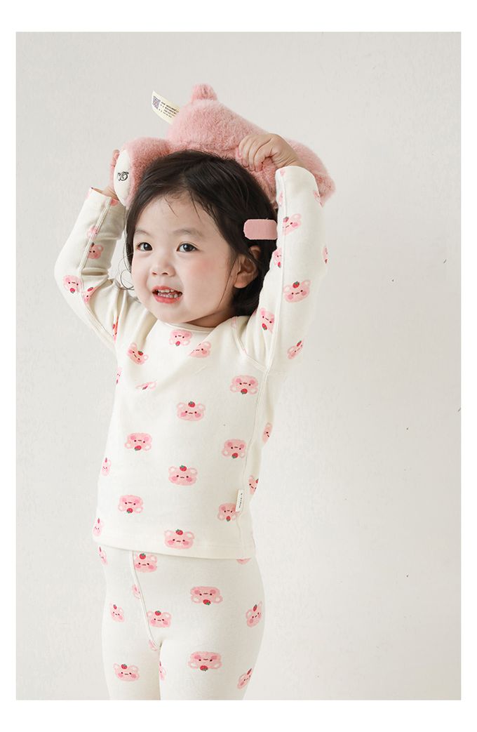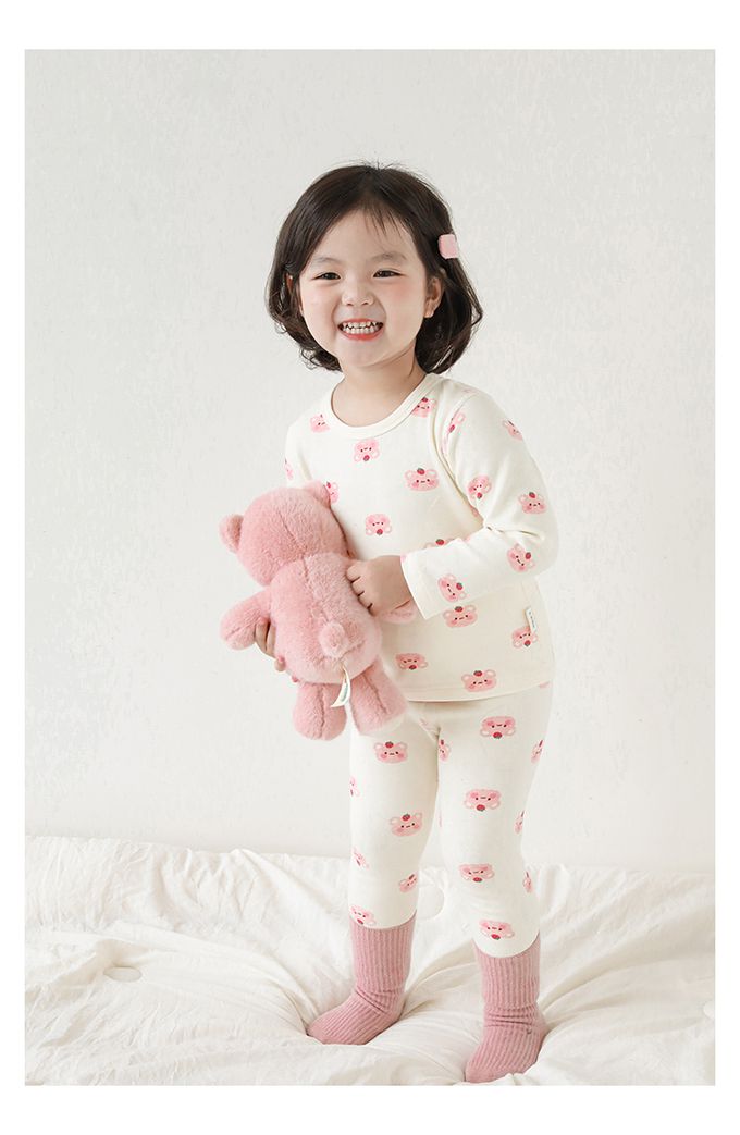 高彈舒適無骨縫制長袖家居服套裝-粉色小熊