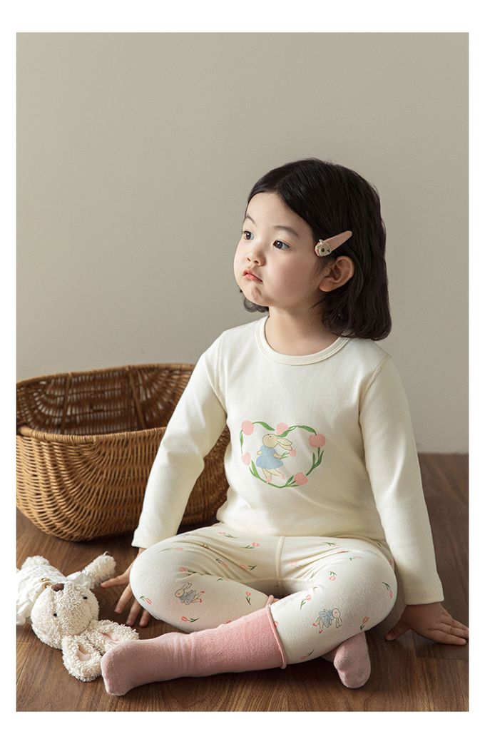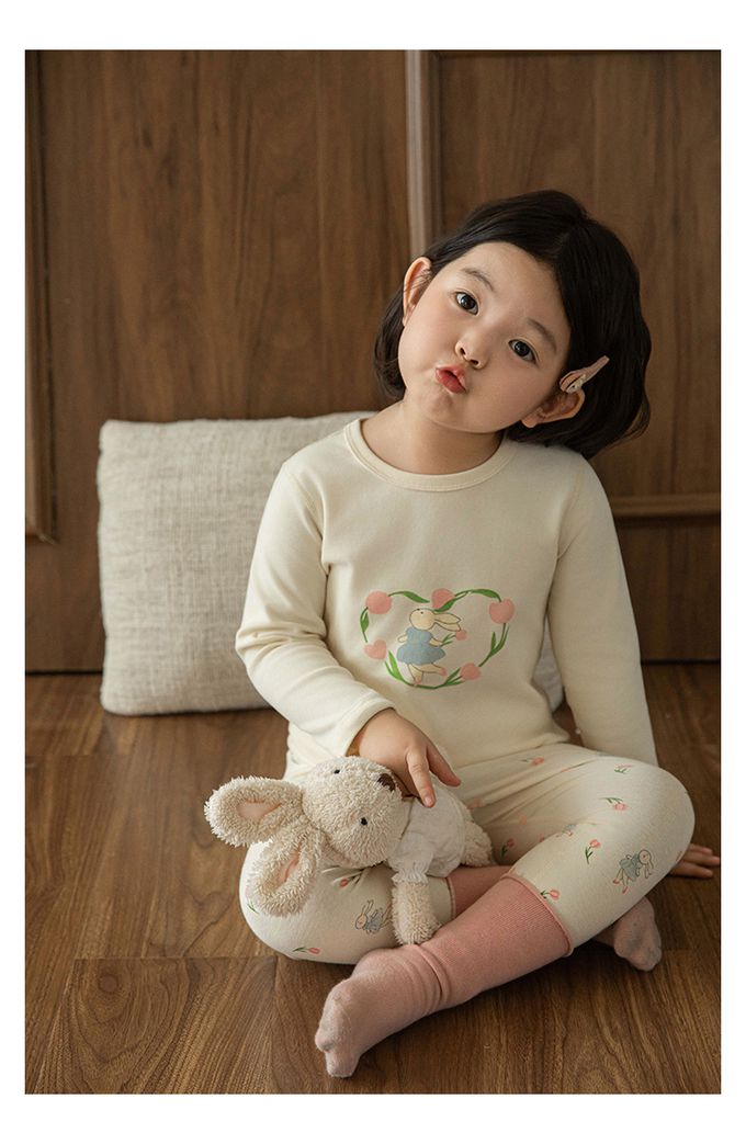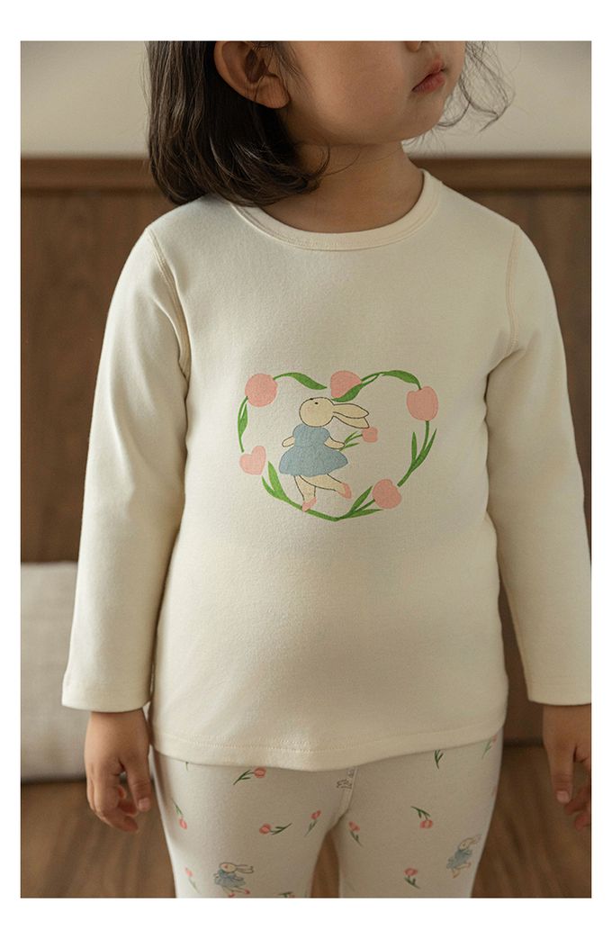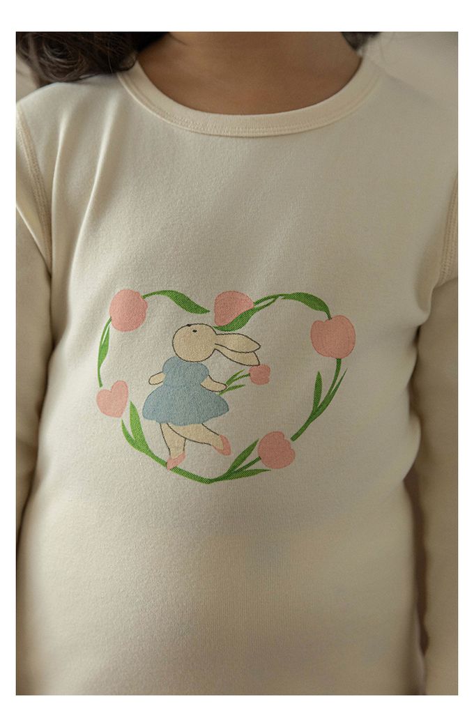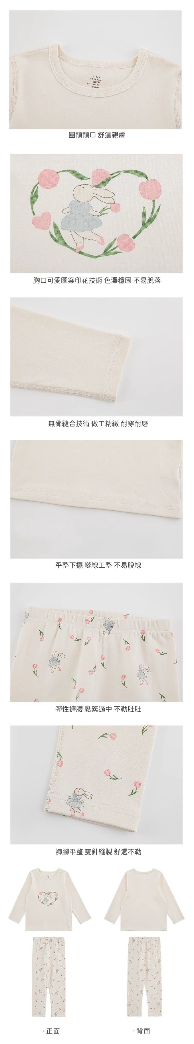 高彈舒適無骨縫制長袖家居服套裝-鬱金香小兔子