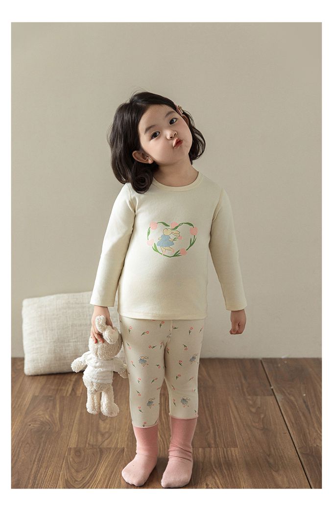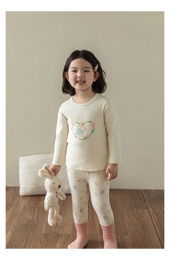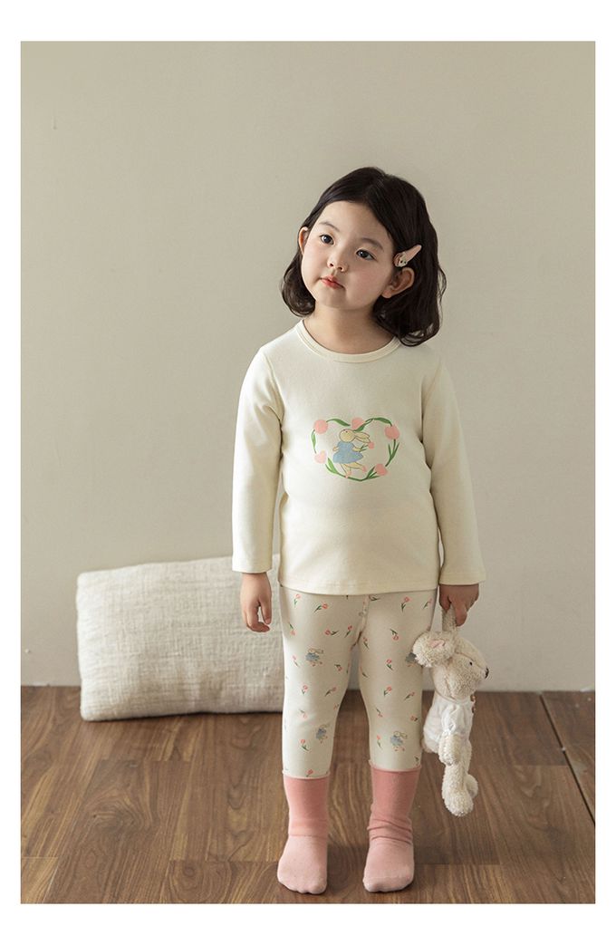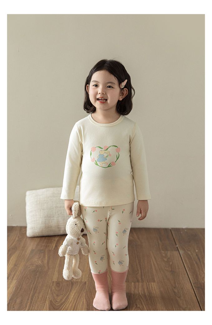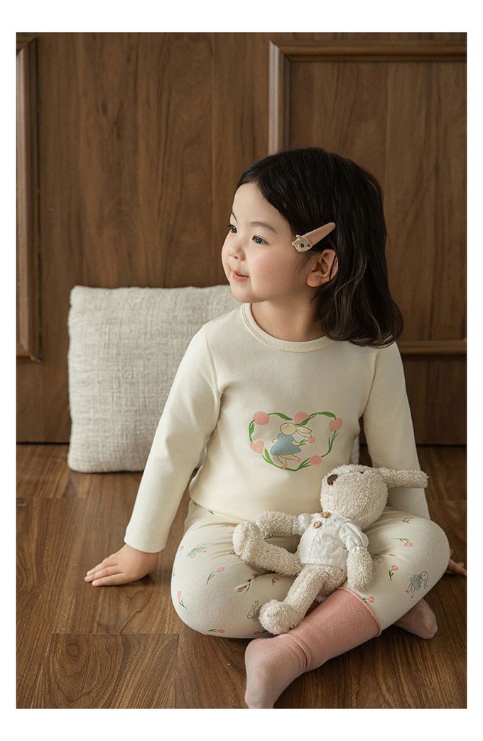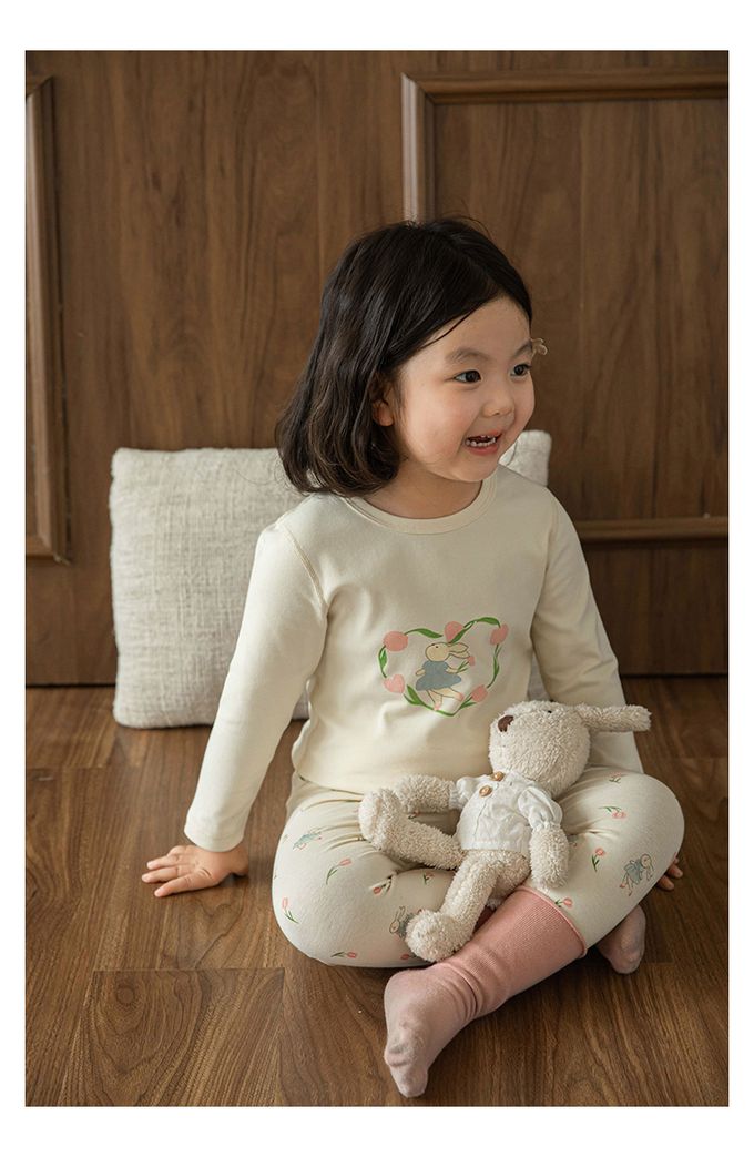 高彈舒適無骨縫制長袖家居服套裝-鬱金香小兔子