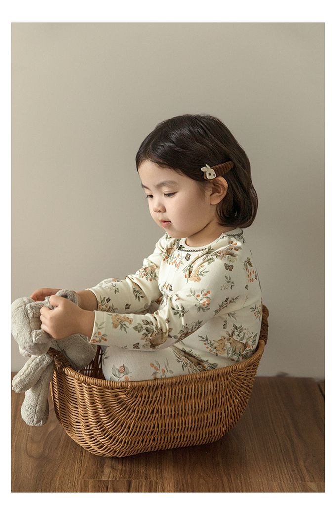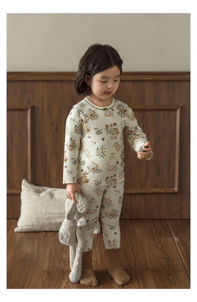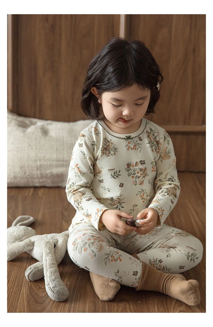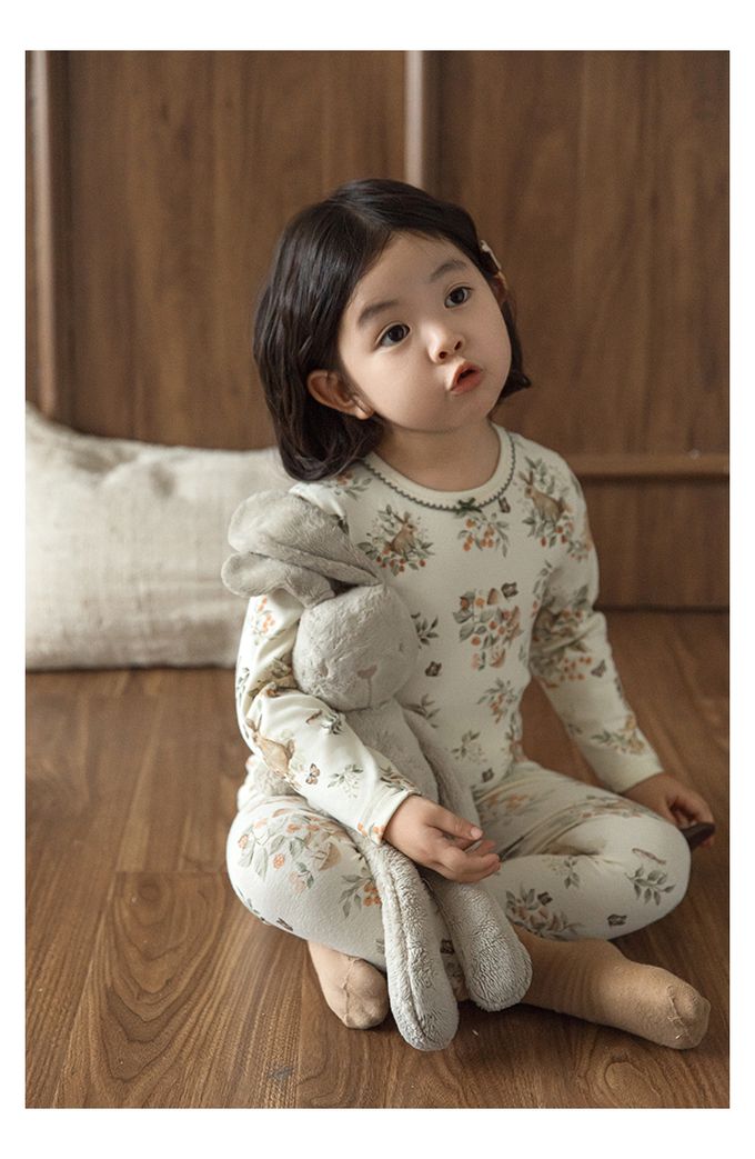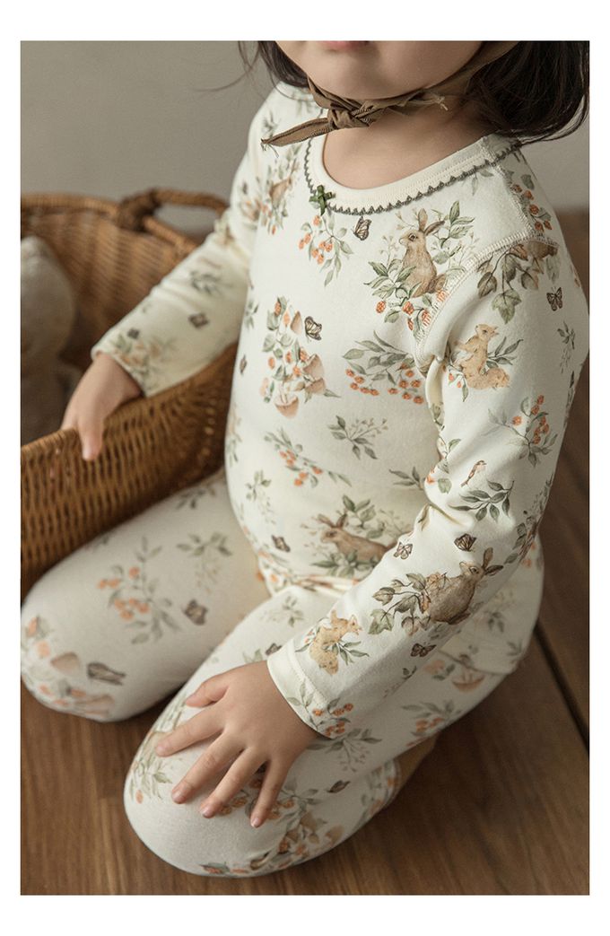 蝴蝶結花邊領高彈舒適無骨縫制長袖家居服套裝(贈收納袋)-森林系小兔