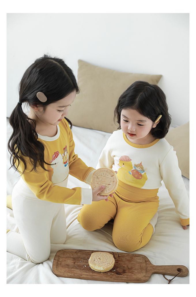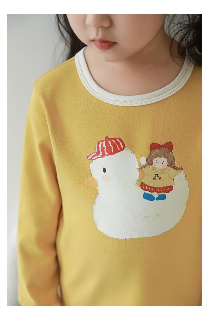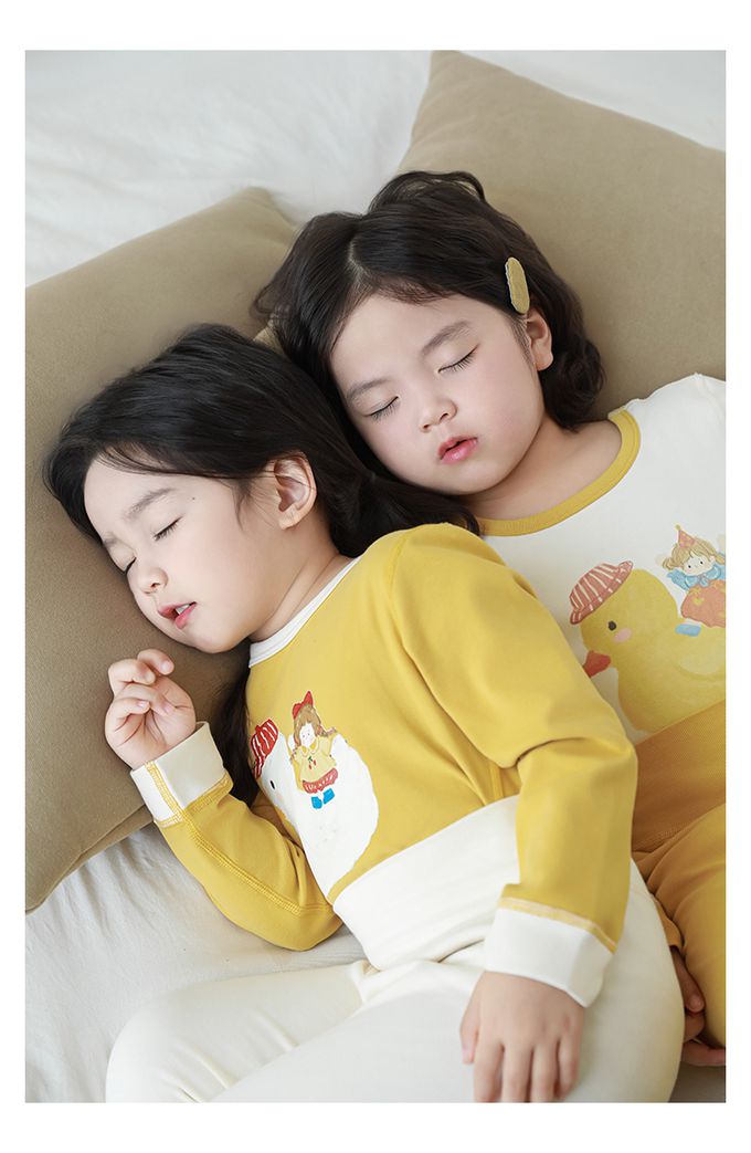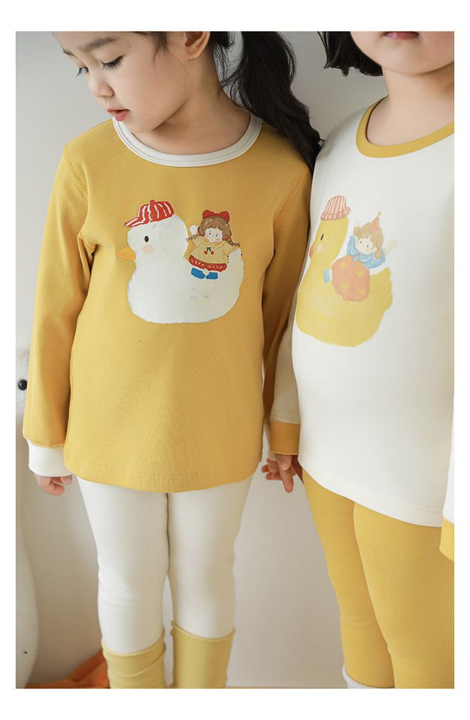 (高腰護肚)高彈舒適無骨縫制長袖家居服套裝-米底黃色小鴨