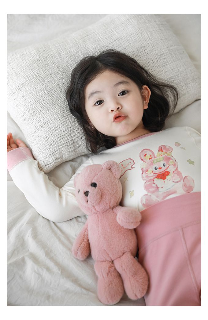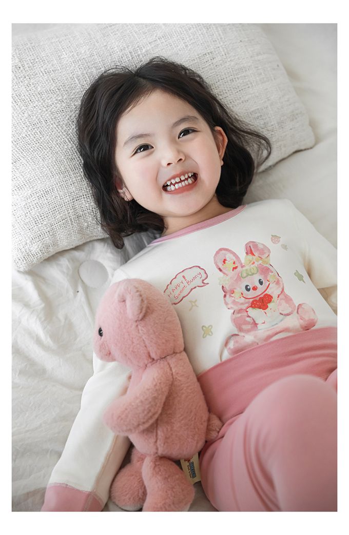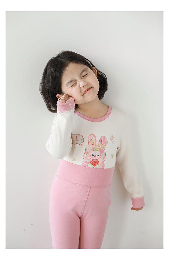(高腰護肚)高彈舒適無骨縫制長袖家居服套裝-粉色小兔
