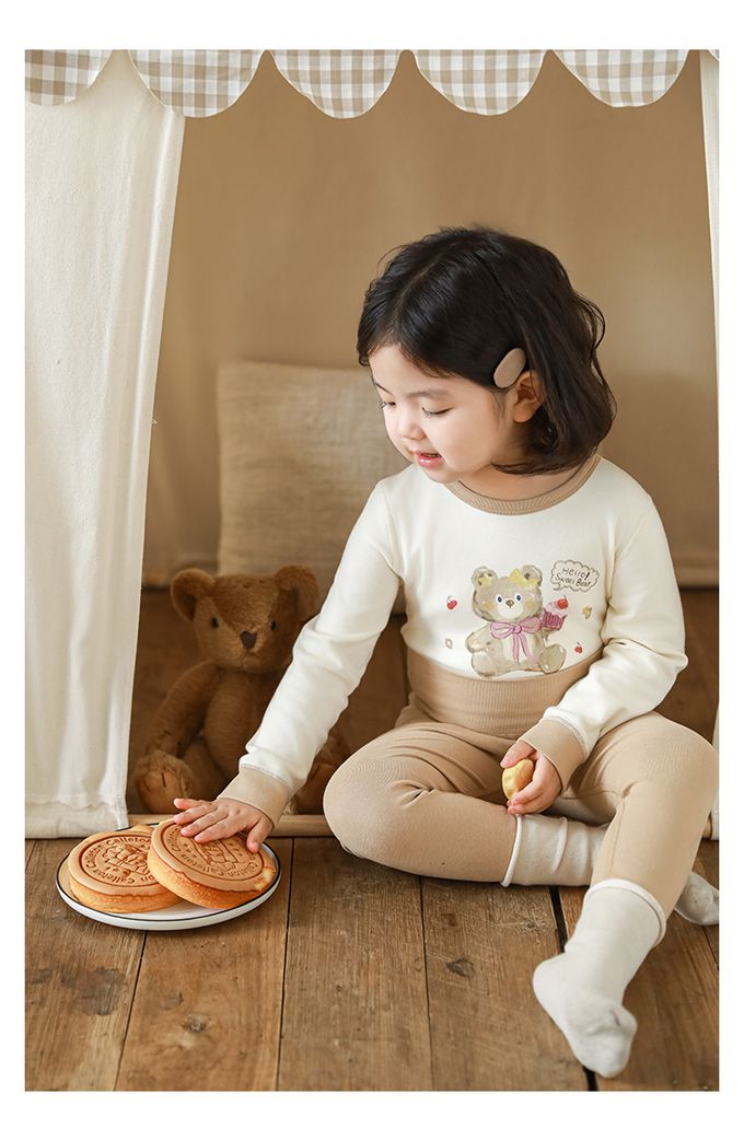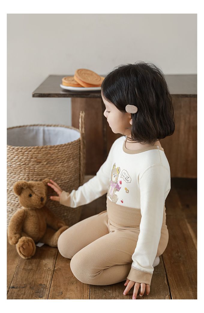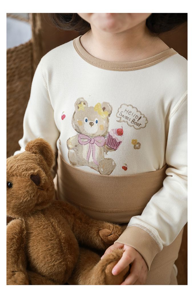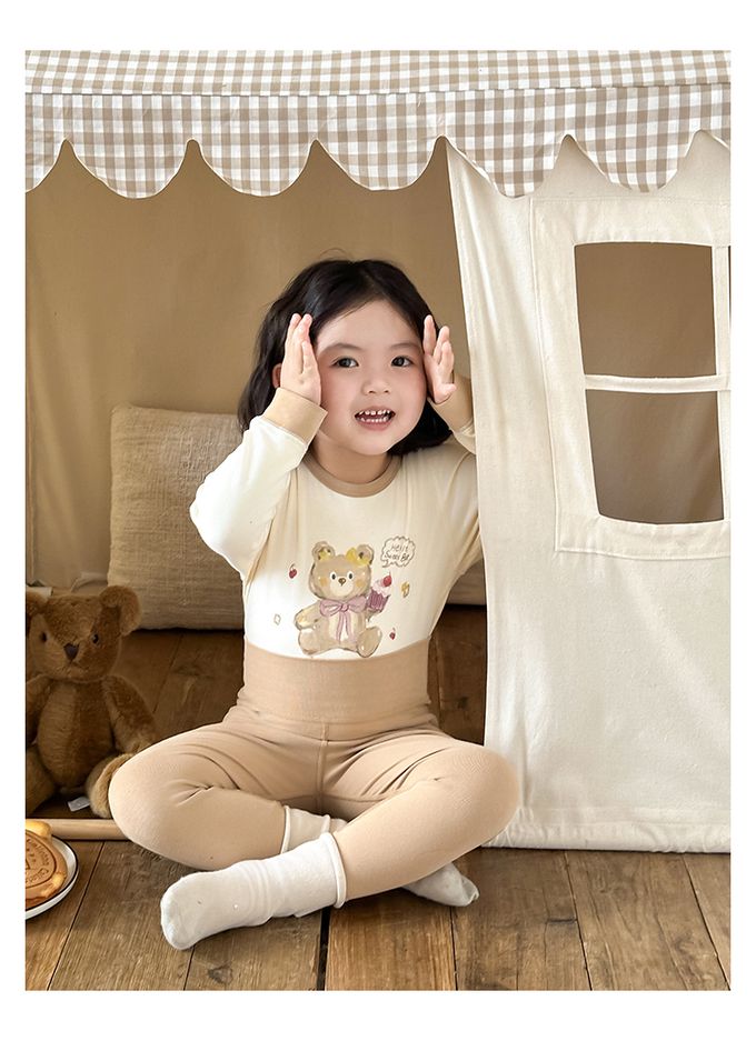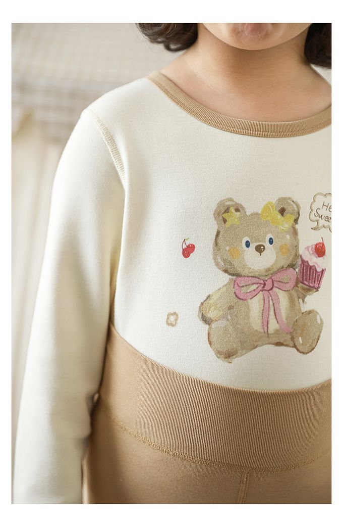 (高腰護肚)高彈舒適無骨縫制長袖家居服套裝-卡其色小熊