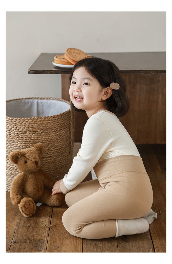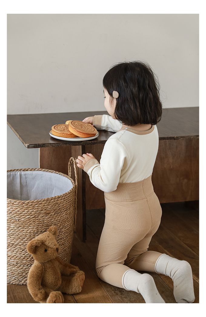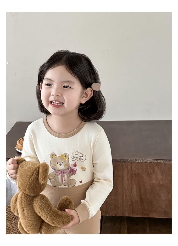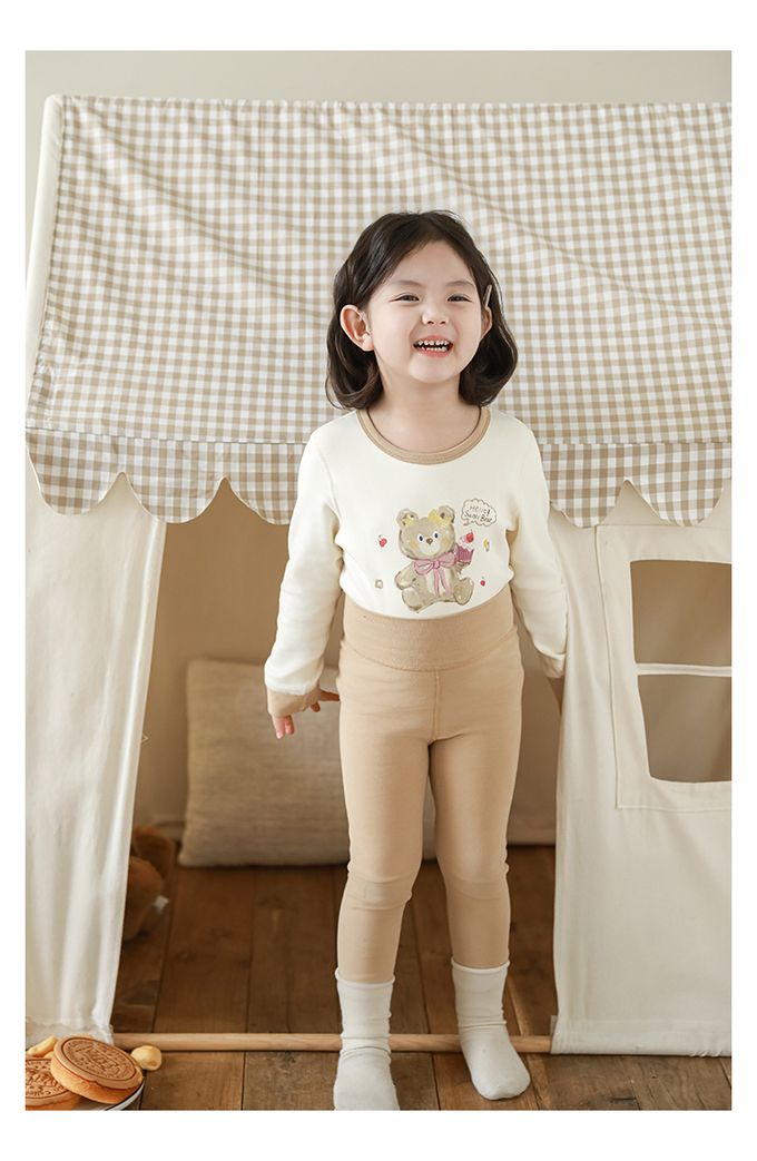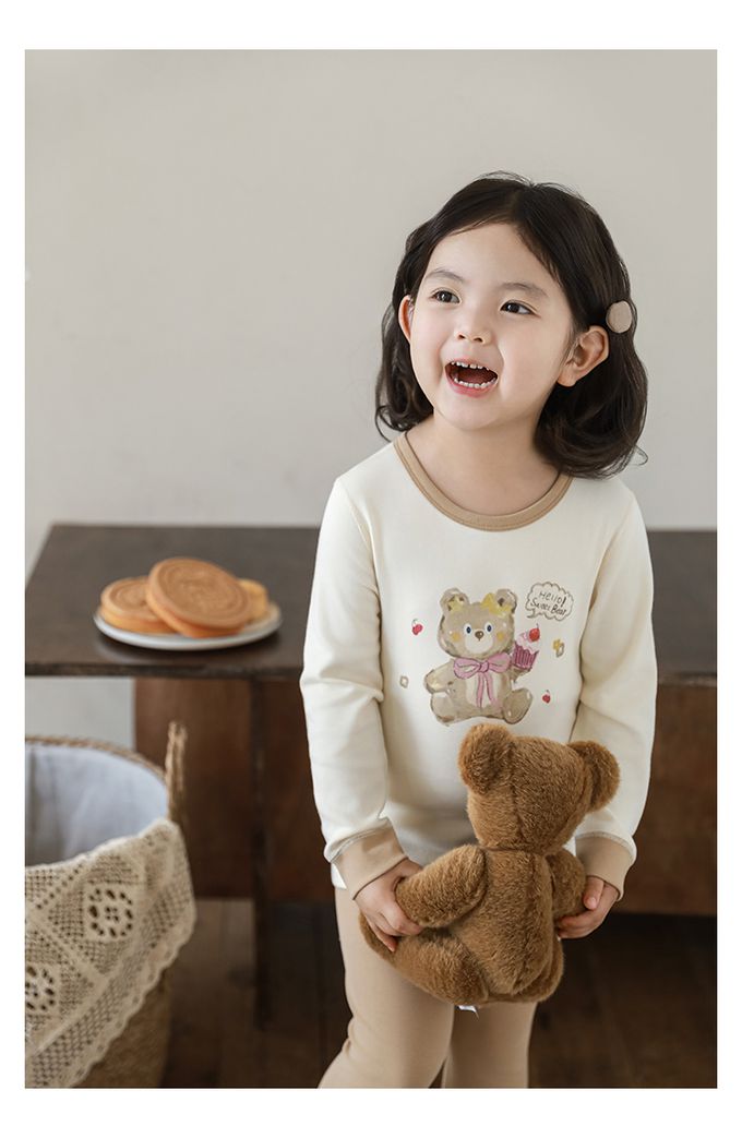 (高腰護肚)高彈舒適無骨縫制長袖家居服套裝-卡其色小熊